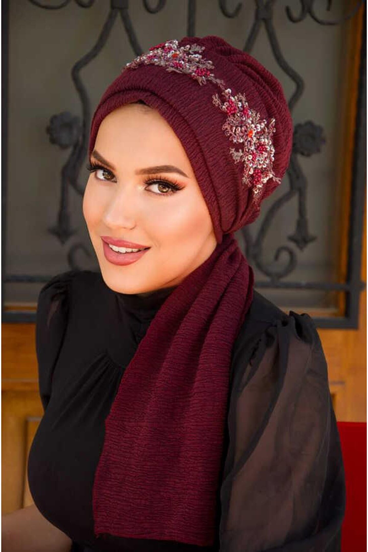 Örme kumaş yapısı ile konforlu bir kullanım sunar ve gün boyu rahatlık sağlar; Tesettür giyim koleksiyonuna özel tasarlanmış, şıklığı ve zarafeti ön planda tutan bir aksesuar; %100 polyester materyal bileşeni sayesinde dayanıklılık ve uzun ömürlü kullanım vaat eder; 30 derecede yıkama talimatına uygun şekilde kolayca temizlenebilir; böylece hijyenik kalır ve bakımı pratiktir; Şık ve gece ortamları için idealdir; özel davetlerde ve etkinliklerde göz alıcı bir aksesuar olarak tercih edilebilir; Her yaş grubuna hitap eden tasarımıyla geniş bir kullanıcı yelpazesine sahiptir;