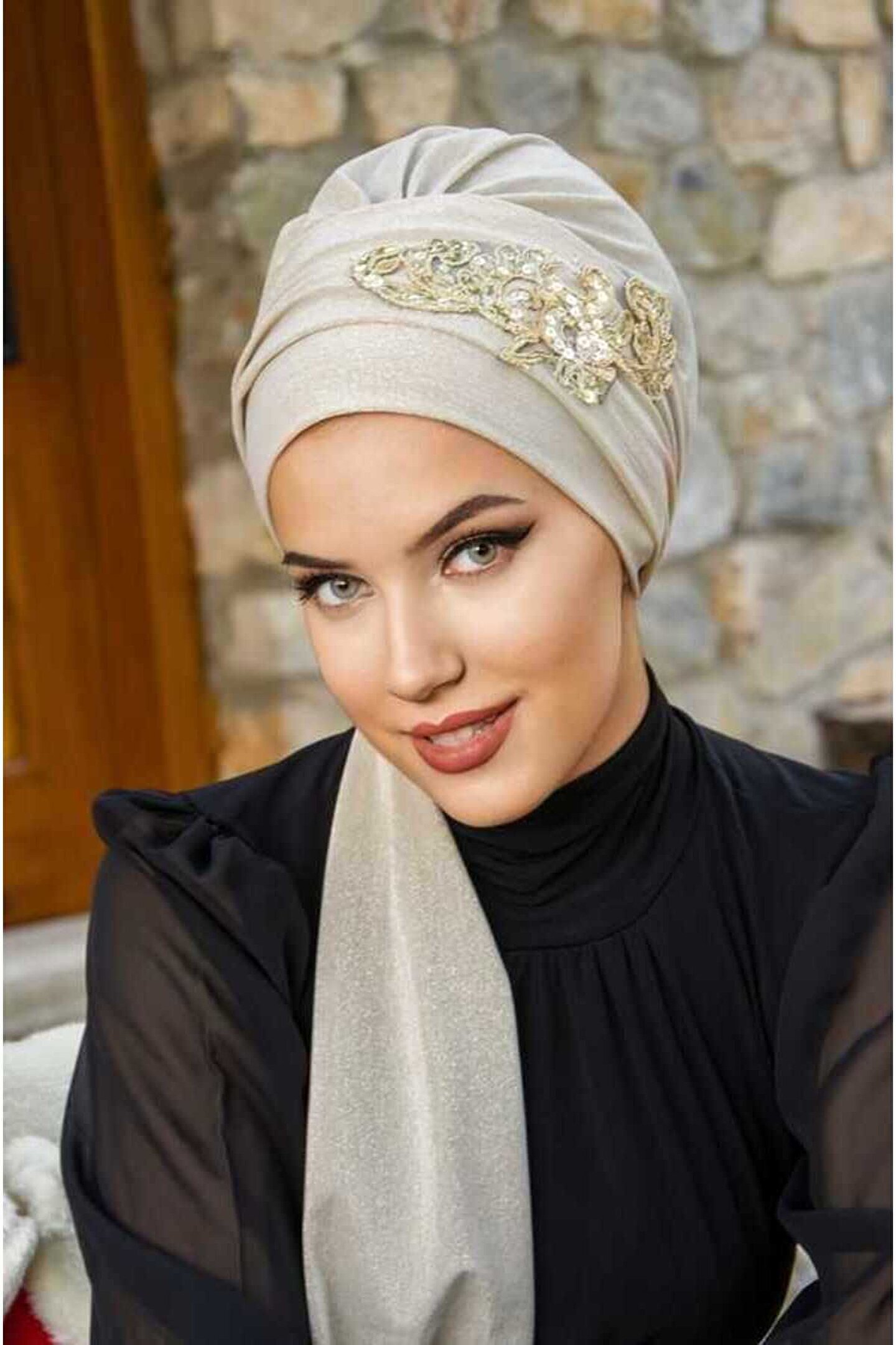 Ekru Gold Nakışlı Atkılı Abiye Bone