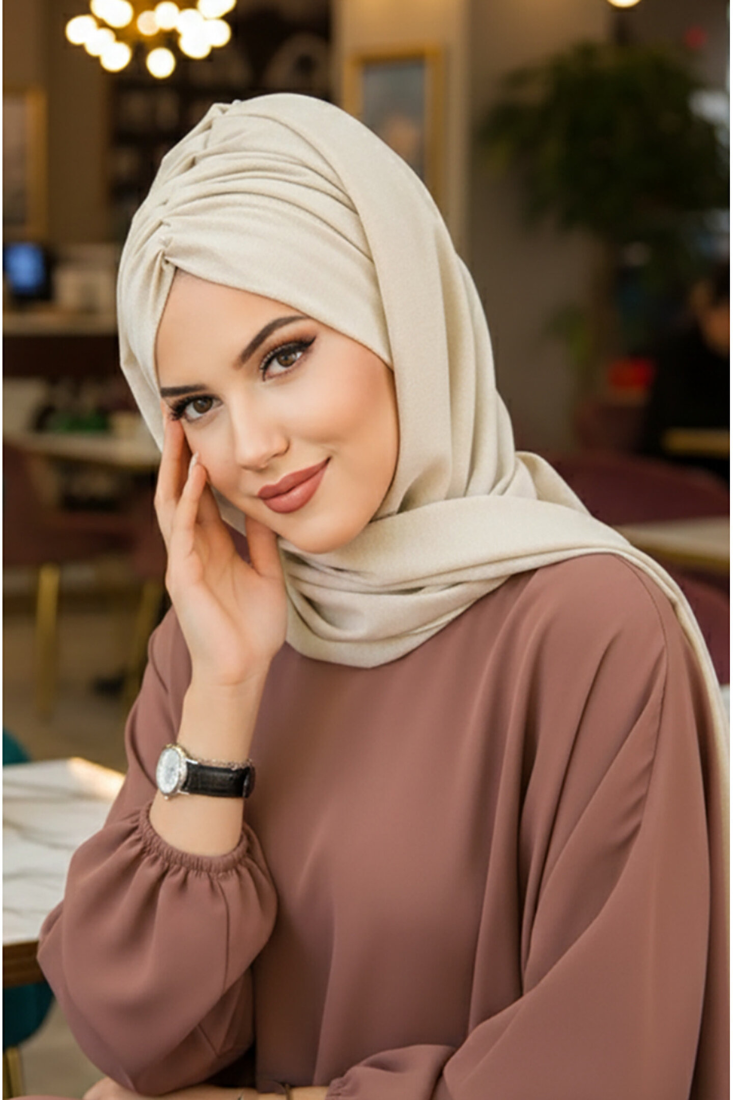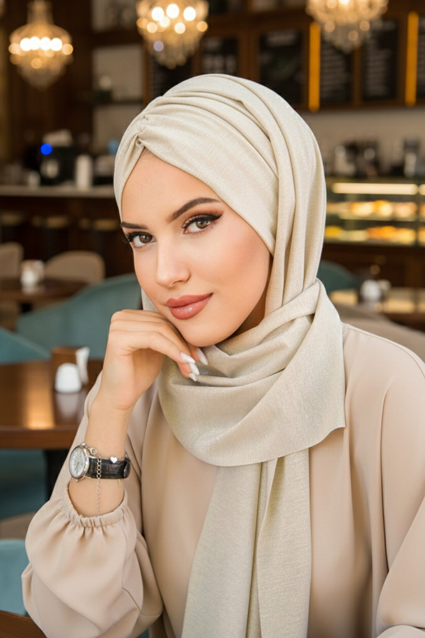 Tesettür giyim koleksiyonuna özel tasarlanmış, şıklığı ve rahatlığı bir arada sunan ekru simli kelebek çapraz bantlı bone şal; Dokuma kumaş yapısı ile dayanıklılığı ve konforu ön planda tutan, uzun süreli kullanım için ideal; %70 pamuk ve %30 polyester karışımı materyal bileşeni sayesinde nefes alabilirlik ve yumuşaklık sağlar; Her yaş grubuna hitap eden tasarımıyla geniş bir kullanıcı yelpazesine uygunluk sunar; Kolay bakım imkanı sağlayan yıkama talimatları ile pratik kullanım ve uzun ömürlülük vadediyor;