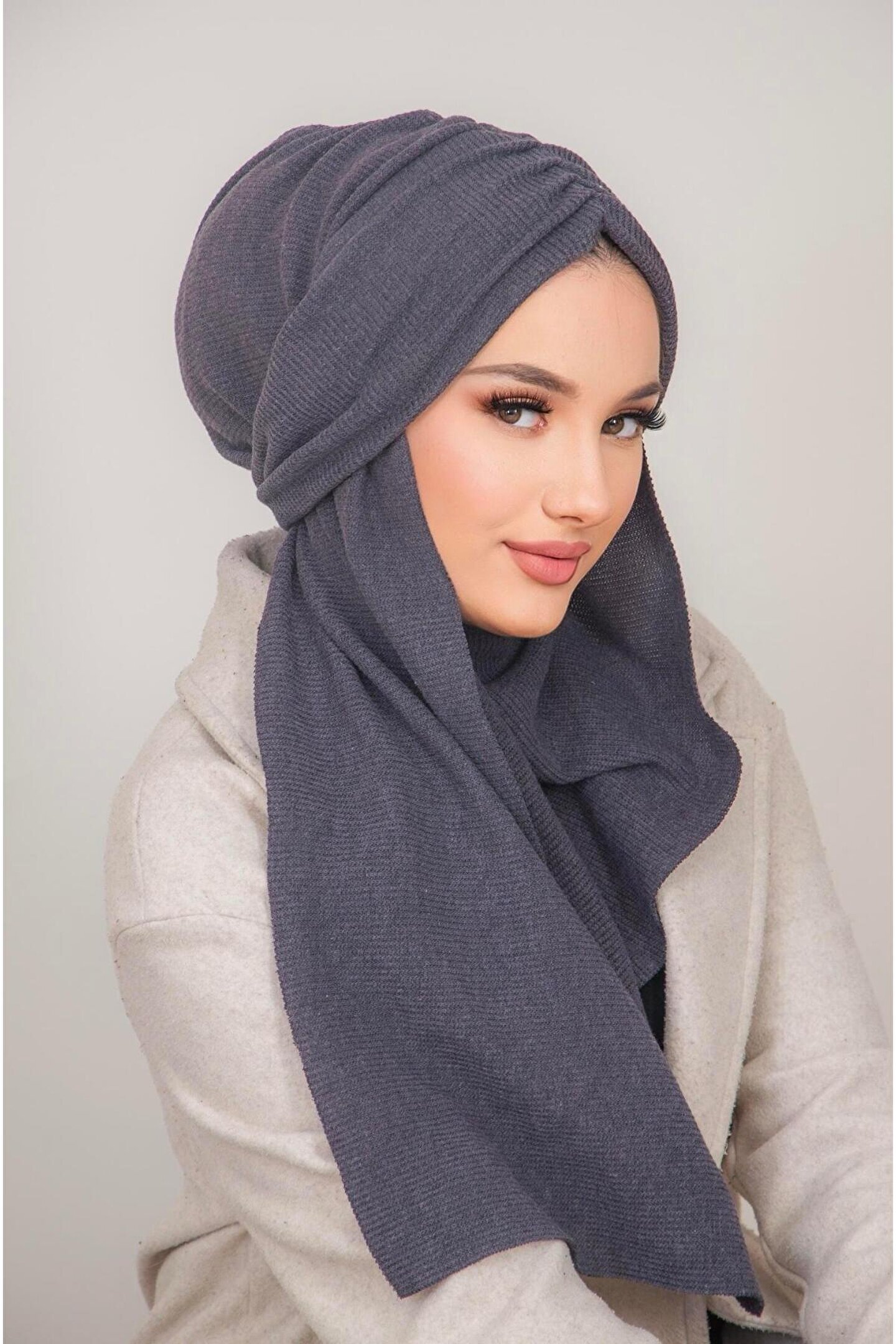 Aişe tesettür Füme Triko Kelebek Model Büzgülü Bone Şal