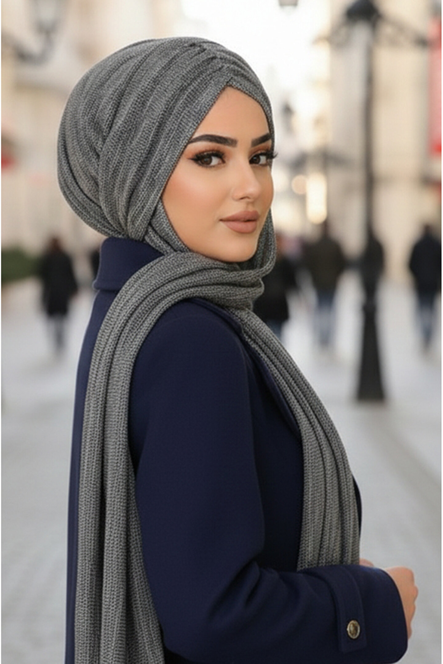 Aişe tesettür Gri Desen Kelebek Model Büzgülü Bone Şal