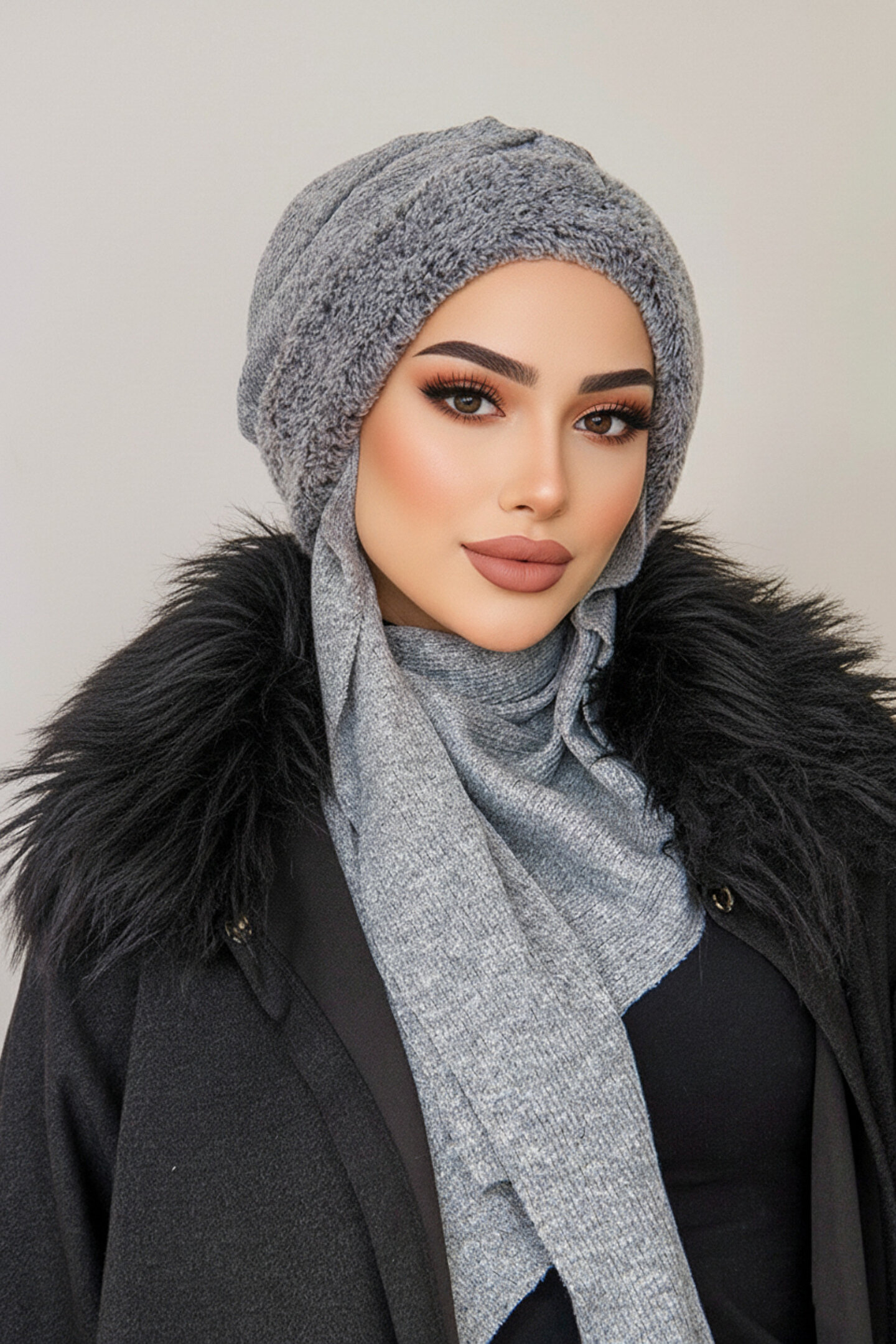 Kışın Işıltısı: Gri Kürklü Kelebek Bone Şal Modeli