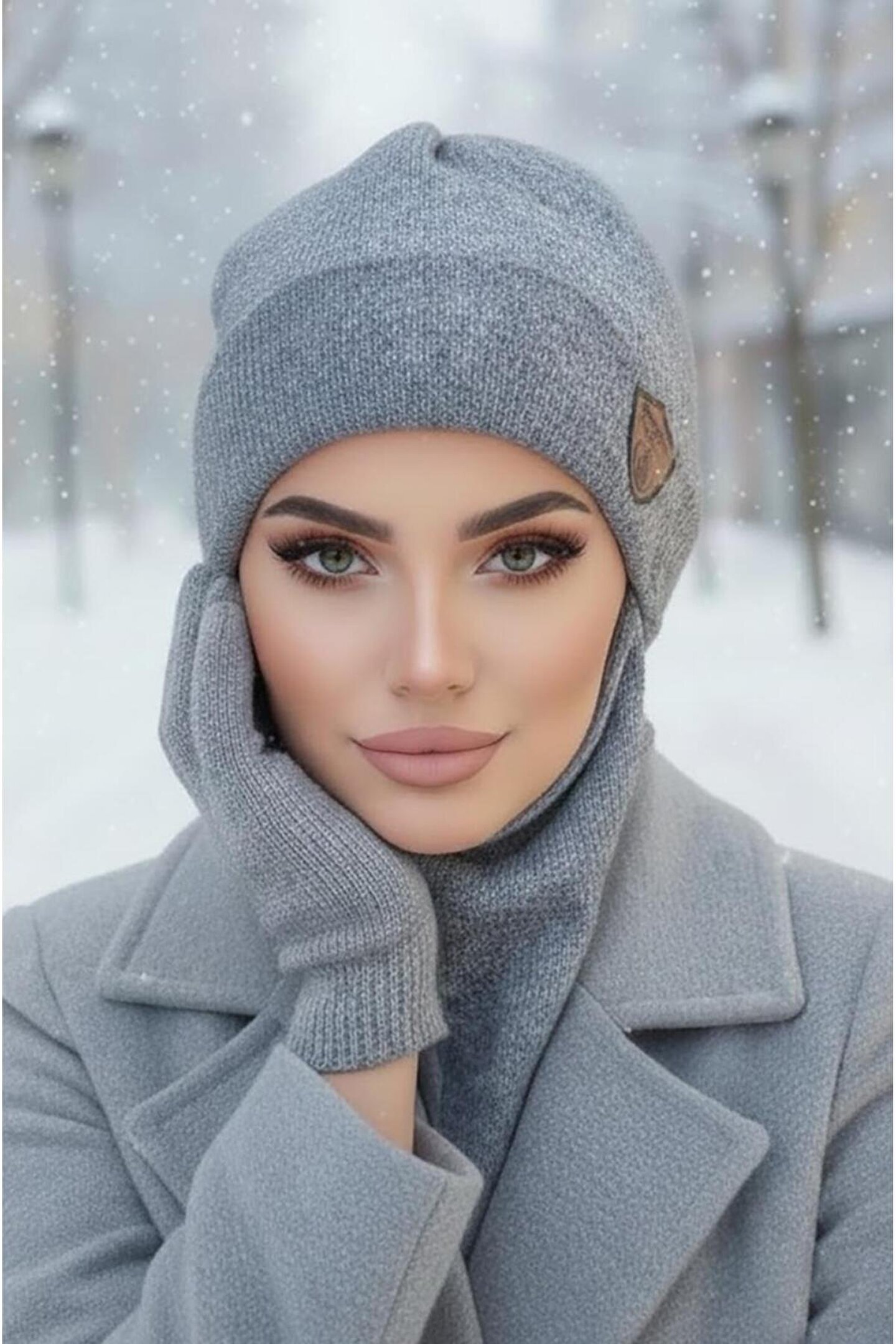 Aişe tesettür Gri Melanj Armalı Maskeli Bere