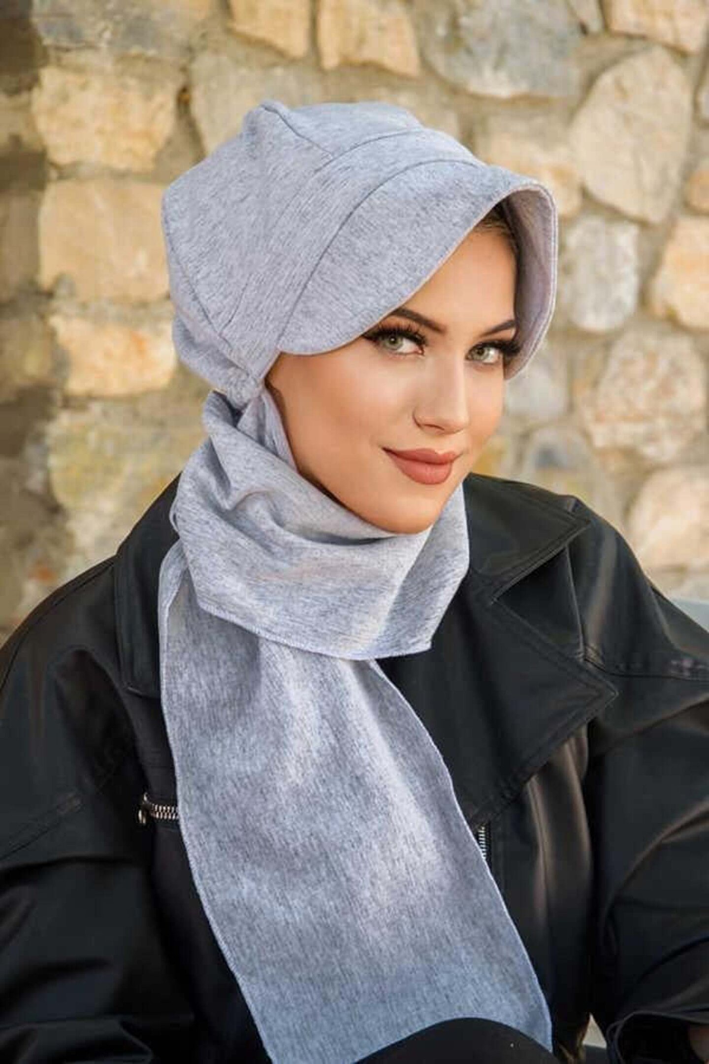 Eşofman Gri Tesettür Atkılı Şapka - 30301 Hayatı Kolaylaştır Kumaş Cinsi : Çelik Dokuma Ürün Özelliği : Hazır atkılı şapka bone. ; Mevsimlik kullanılabilir. ; Yıkama: 30 derecede yıkanabilir.;