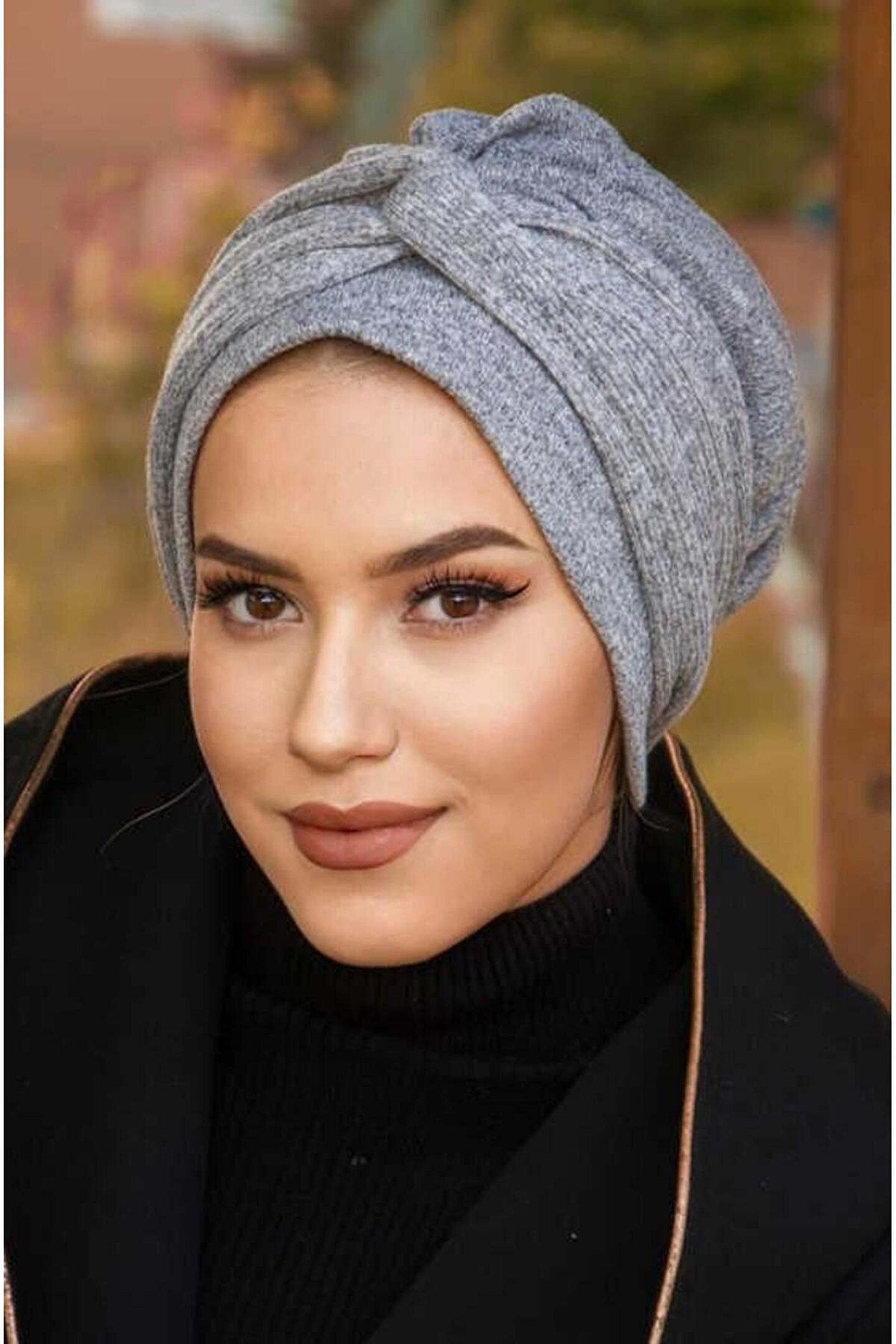 Aişe tesettür Gri Melanj Burgu Detaylı Bone