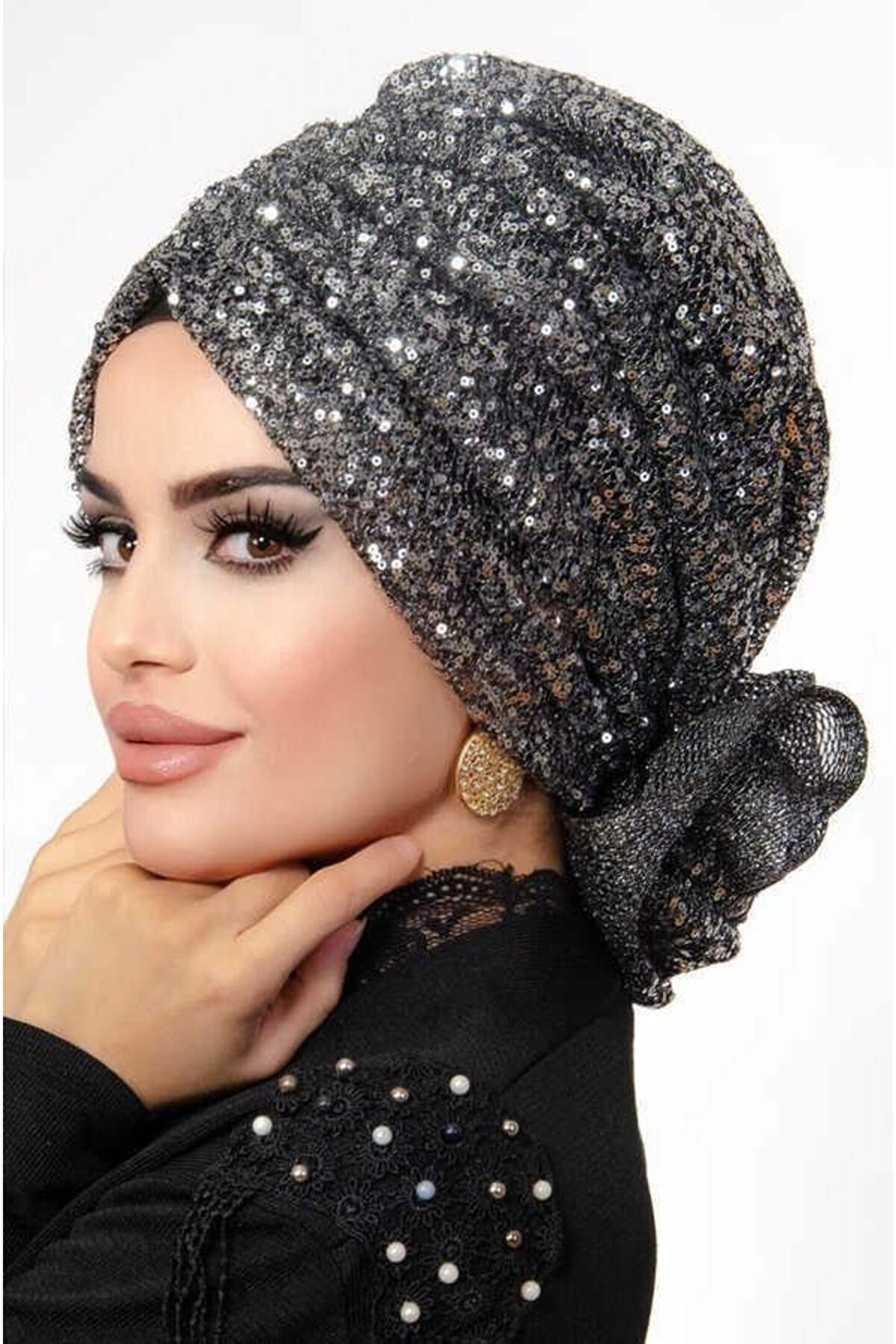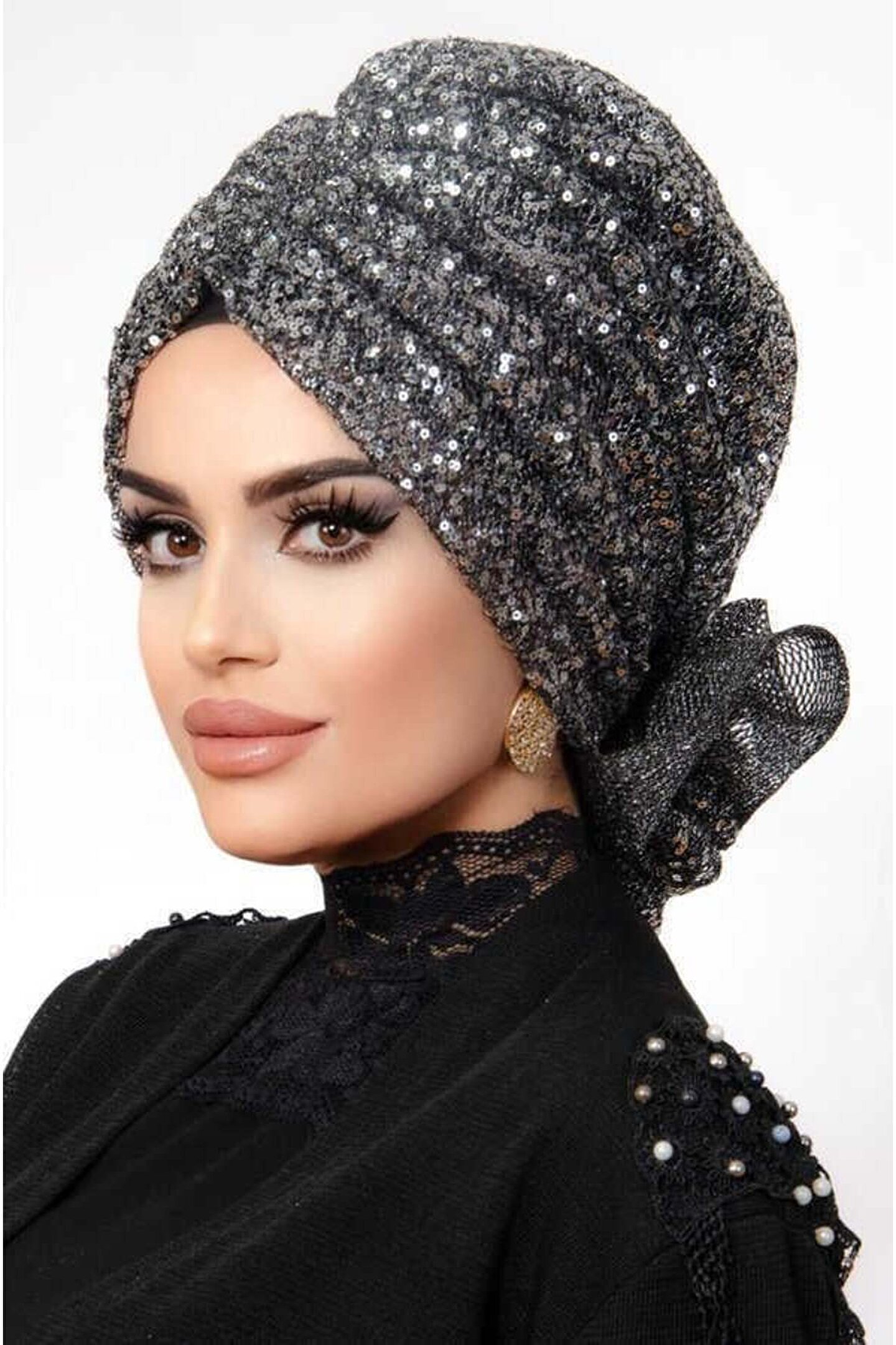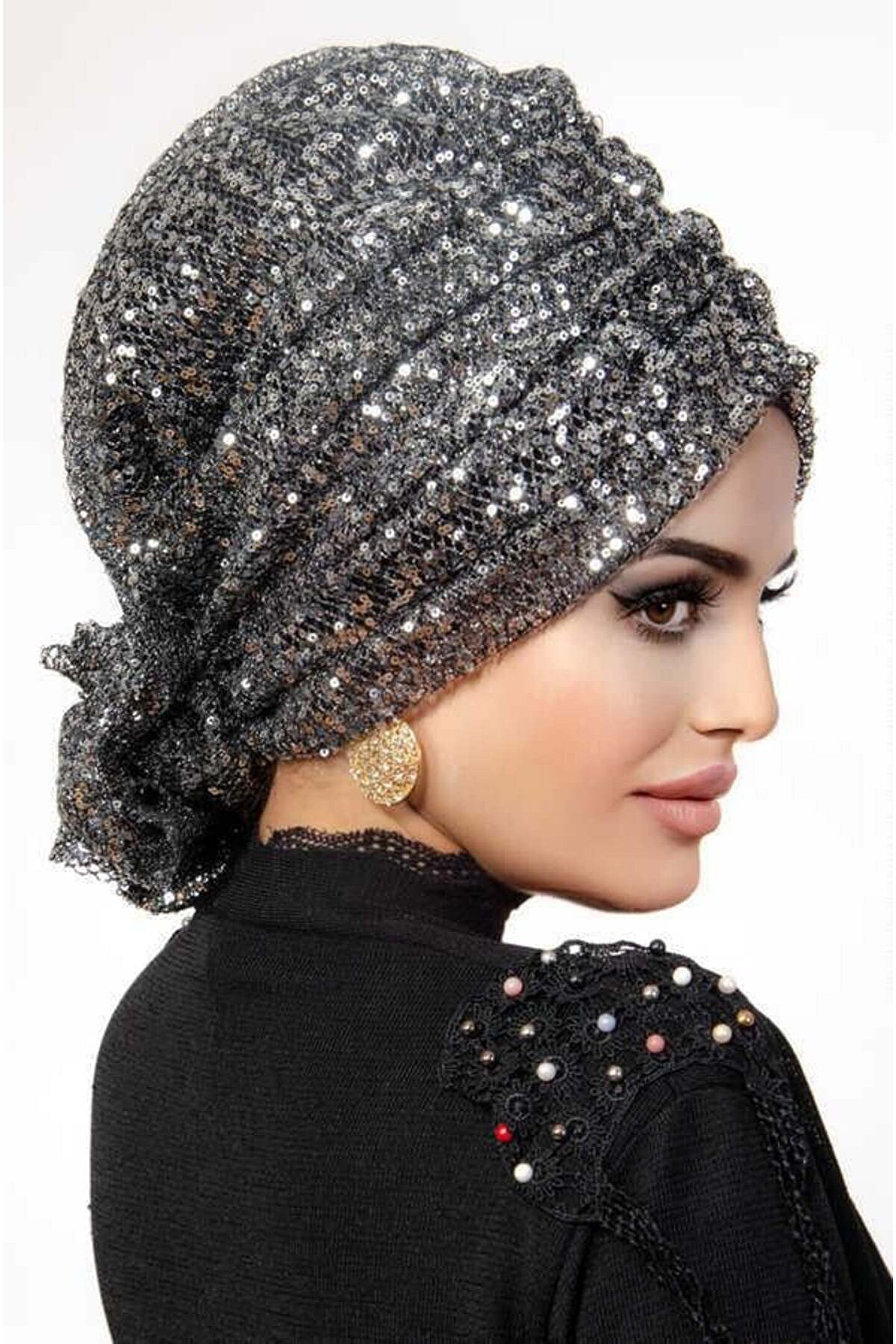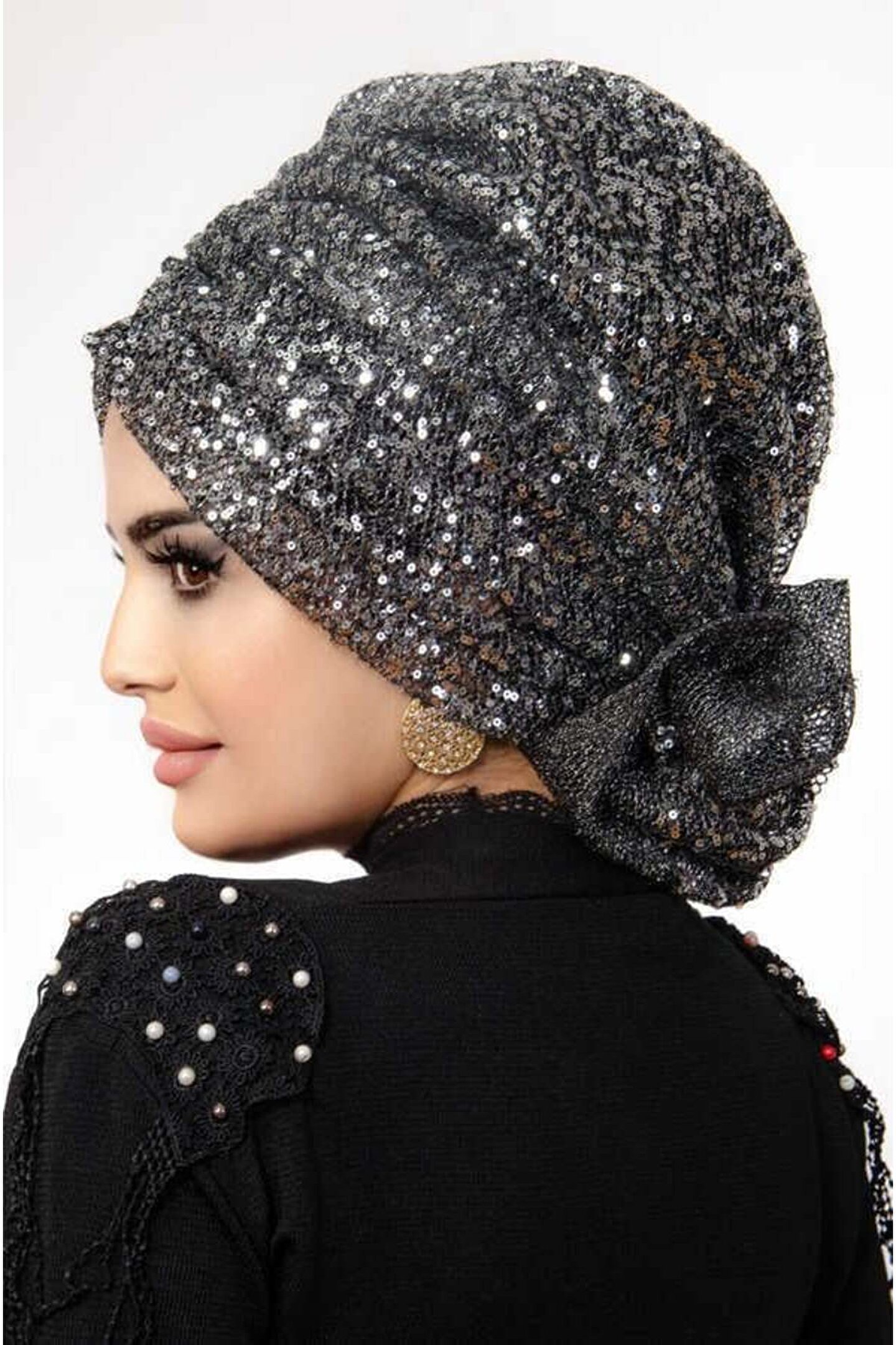 Aişe tesettür Gümüş Payet Abiye Tokalı Bone
