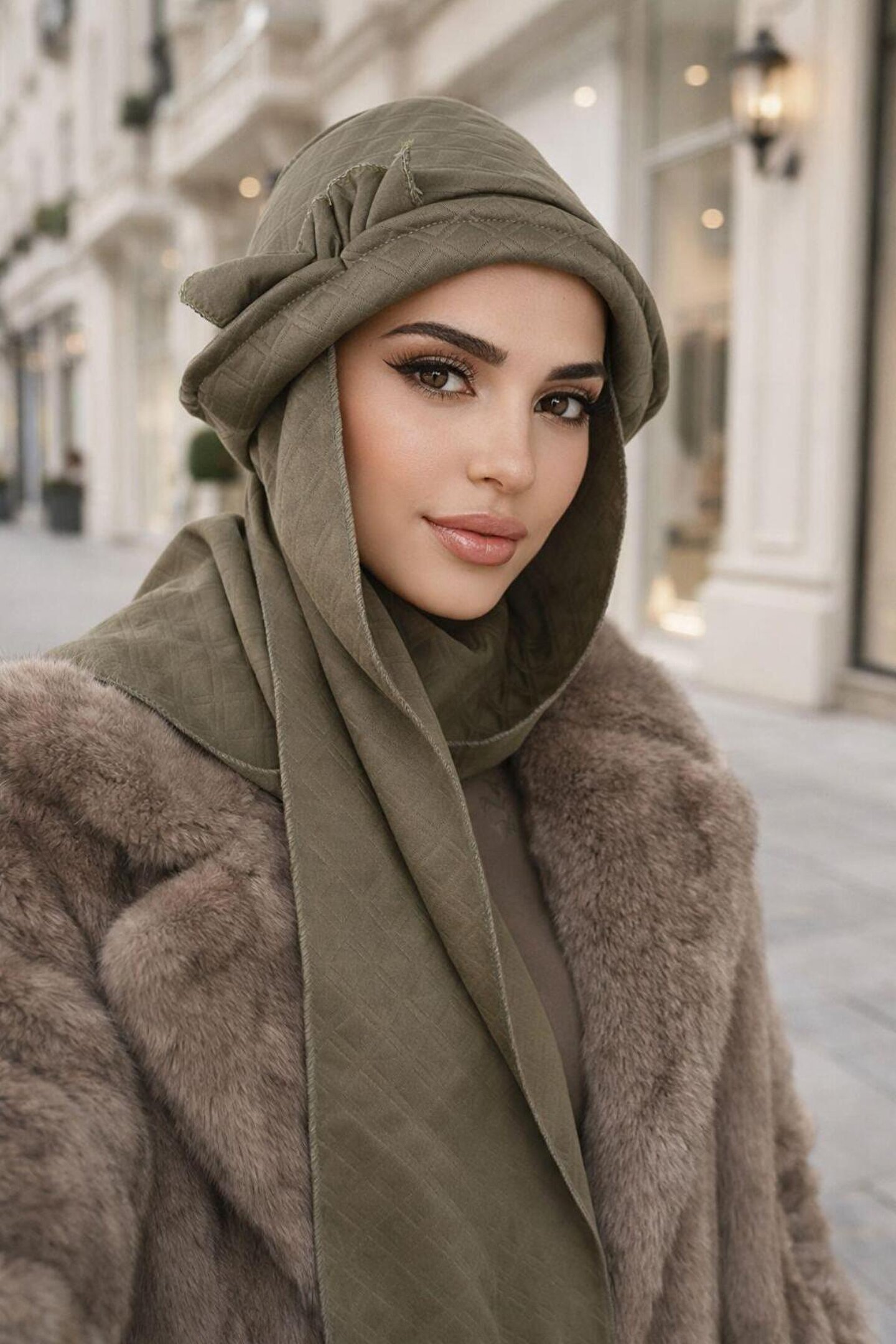 Aişe tesettür Haki Aksesuarlı Atkılı Vintage Şapka