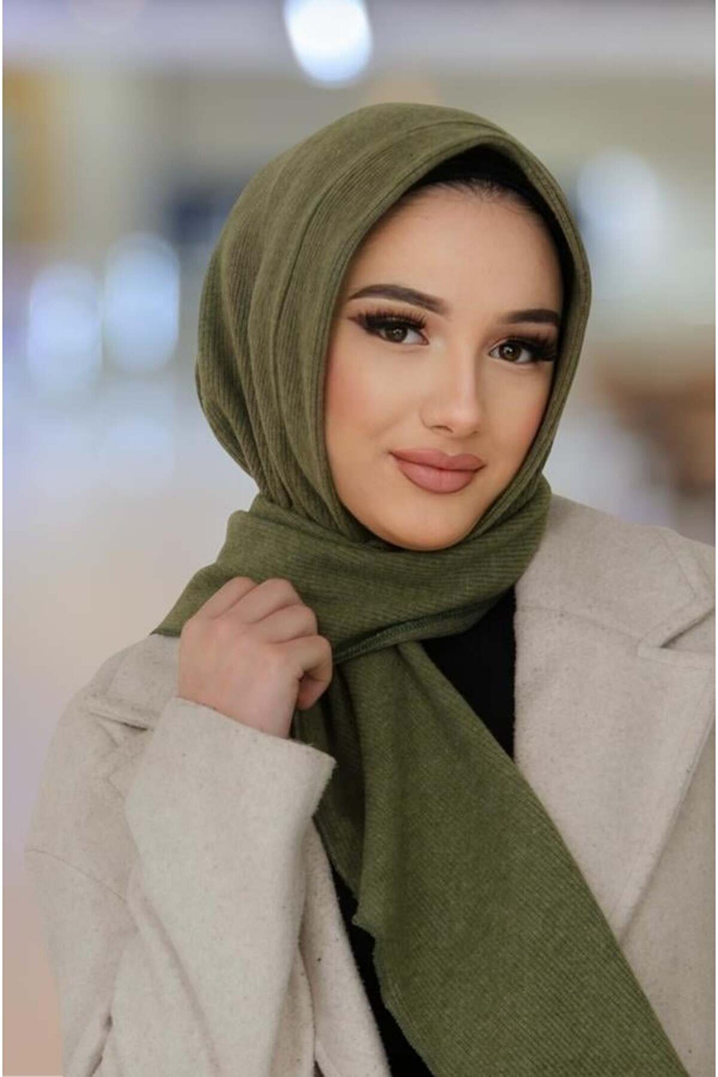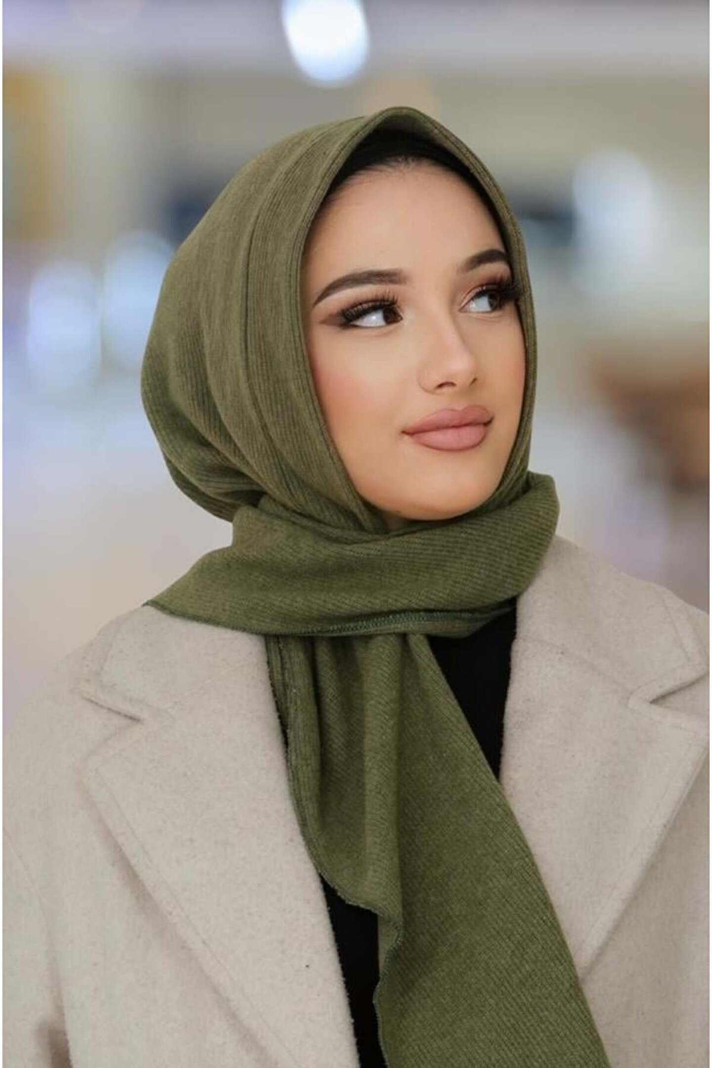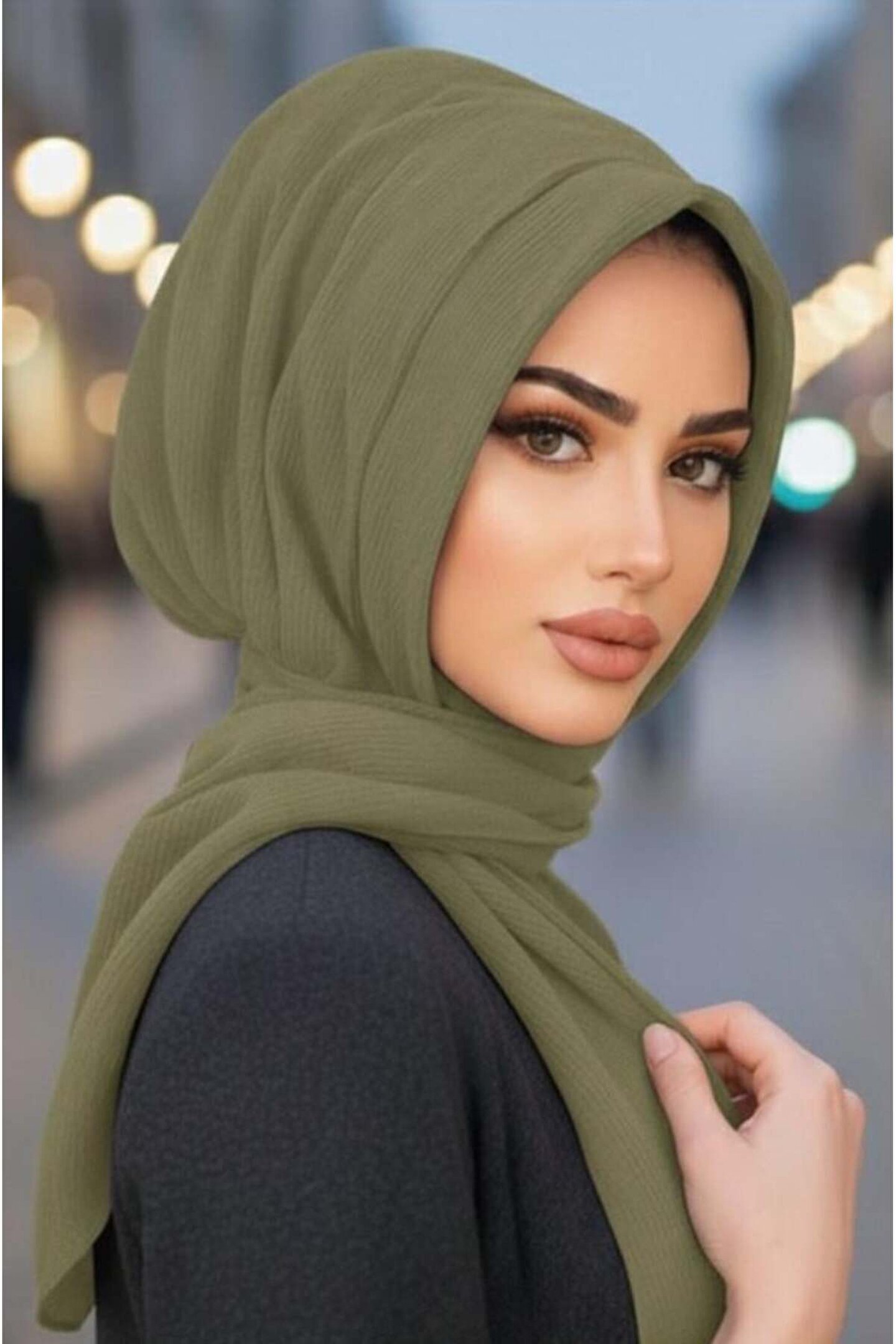 Aişe tesettür Haki Kapüşonlu Çıtçıtlı Şal