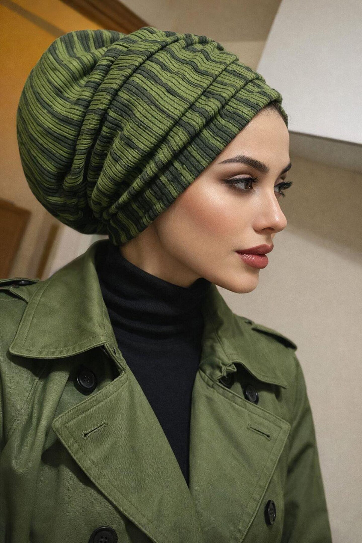 Haki Siyah Desen Büzgülü Salaş Bone Göz Kamaştırıyor
