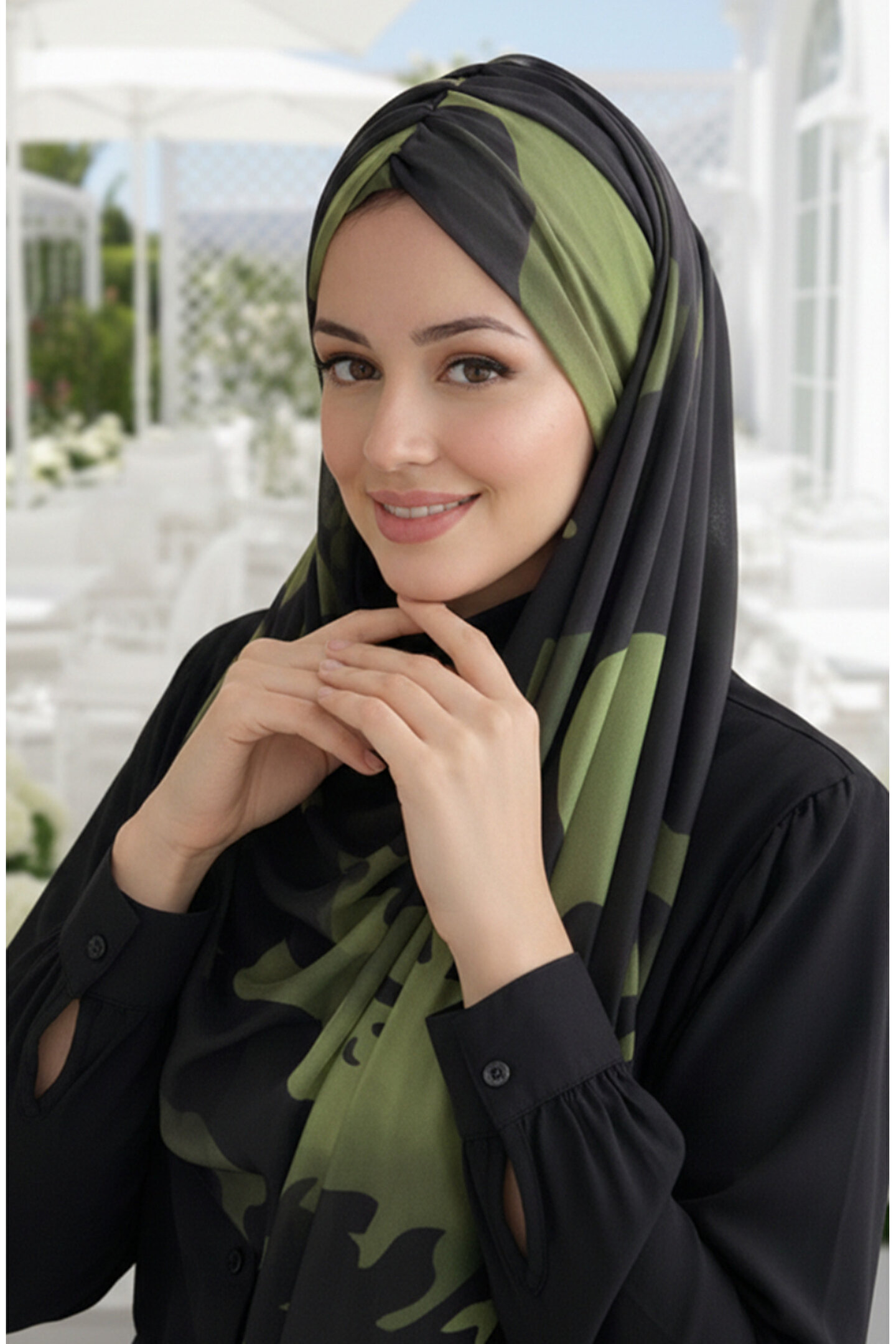 Stilinde hem ciddiyet hem de modern bir hava arayanlar için Haki Siyah Desenli Hazır Şal tasarlandı. Dijital tül kumaşının sunduğu hafiflik ve haki-siyahın zamansız uyumu, bu şalı her mevsimin, özellikle de yaz günlerinin vazgeçilmezi kılıyor. Enseden geçirmeli yapısı sayesinde saniyeler içinde profesyonelce bağlanmış bir şal görünümüne sahip olabilirsiniz.
