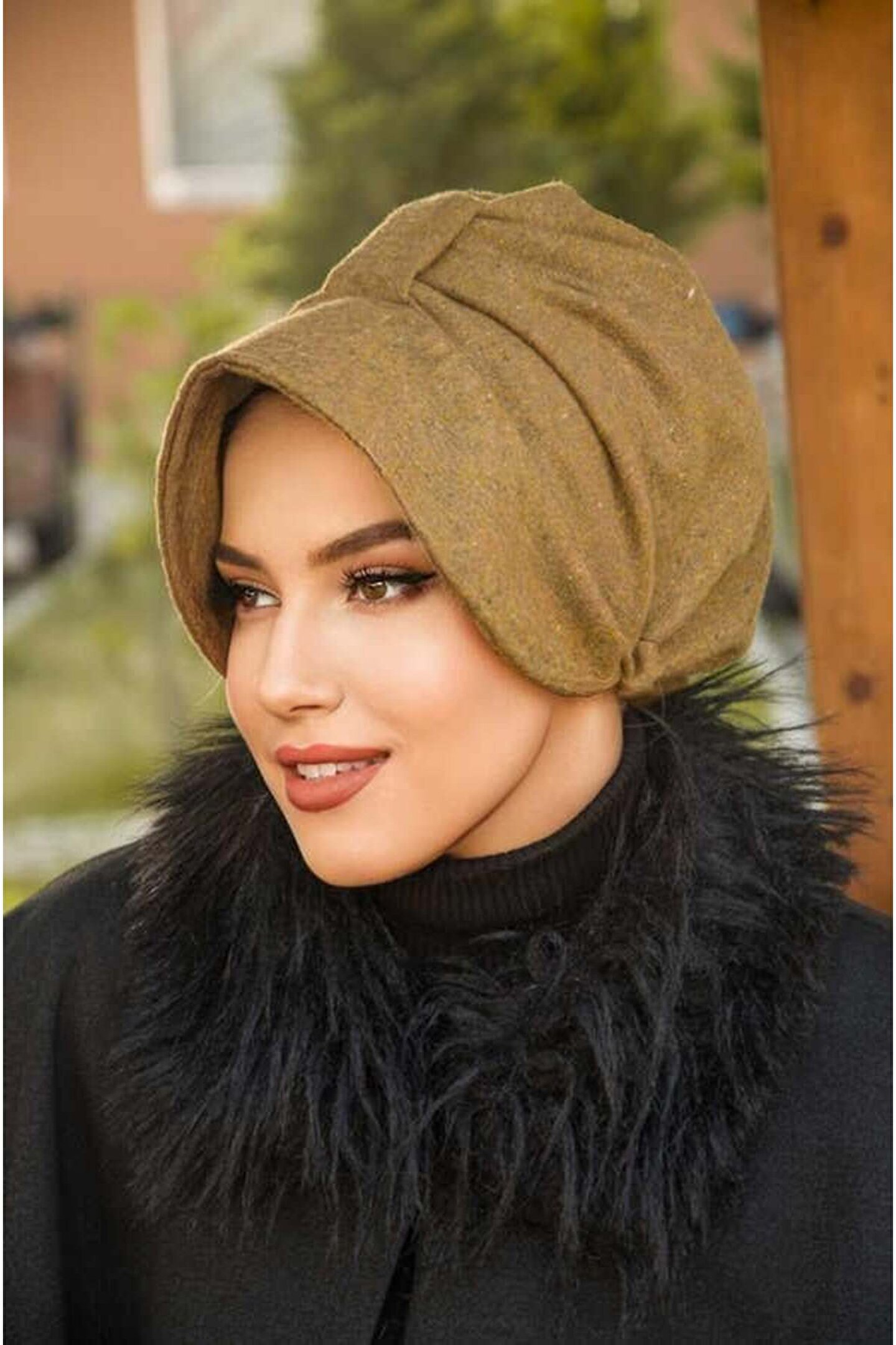 Aişe tesettür Hardal Melanj Kaşe Şapka Bone