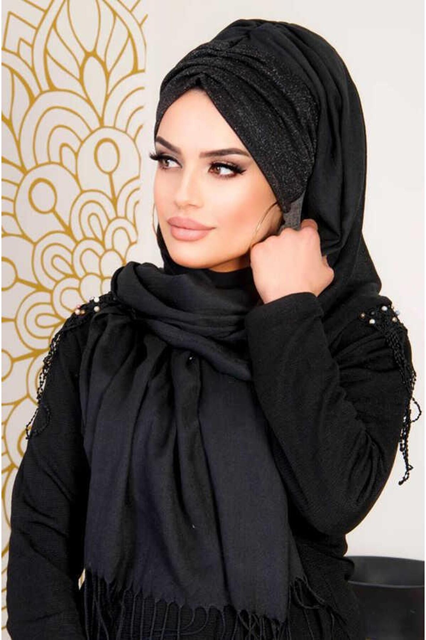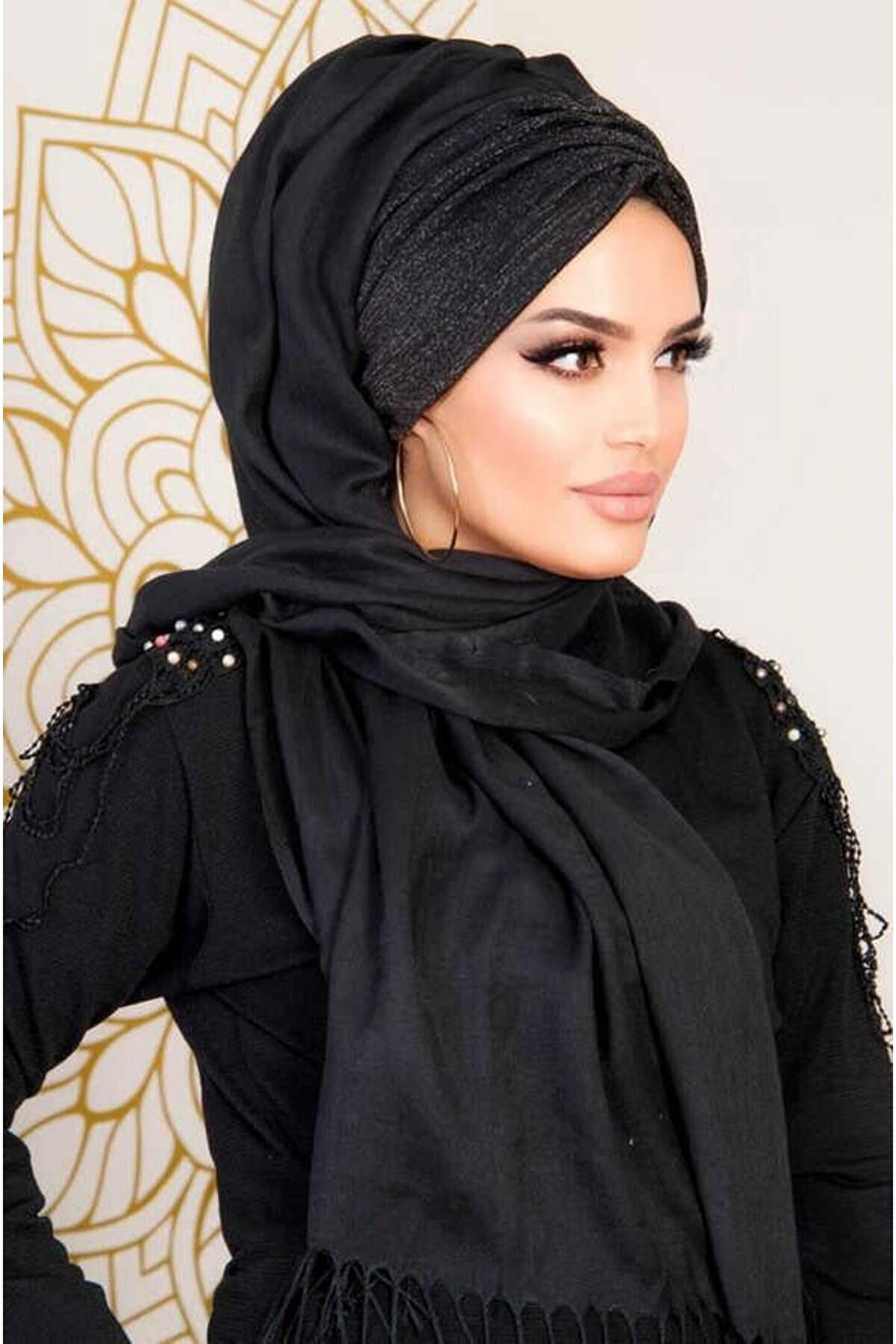Sade ve şık tasarımıyla her kıyafetle uyum sağlayan düz desenli siyah şal; Yüksek kaliteli 100% polyester materyal bileşeni sayesinde uzun ömürlü kullanım sunar; Kolay bakım imkanı sağlayan Type 1 yıkama talimatına uygun şekilde temizlenebilir; Polyester kumaşı ile hafif ve konforlu bir kullanım deneyimi yaşatır;