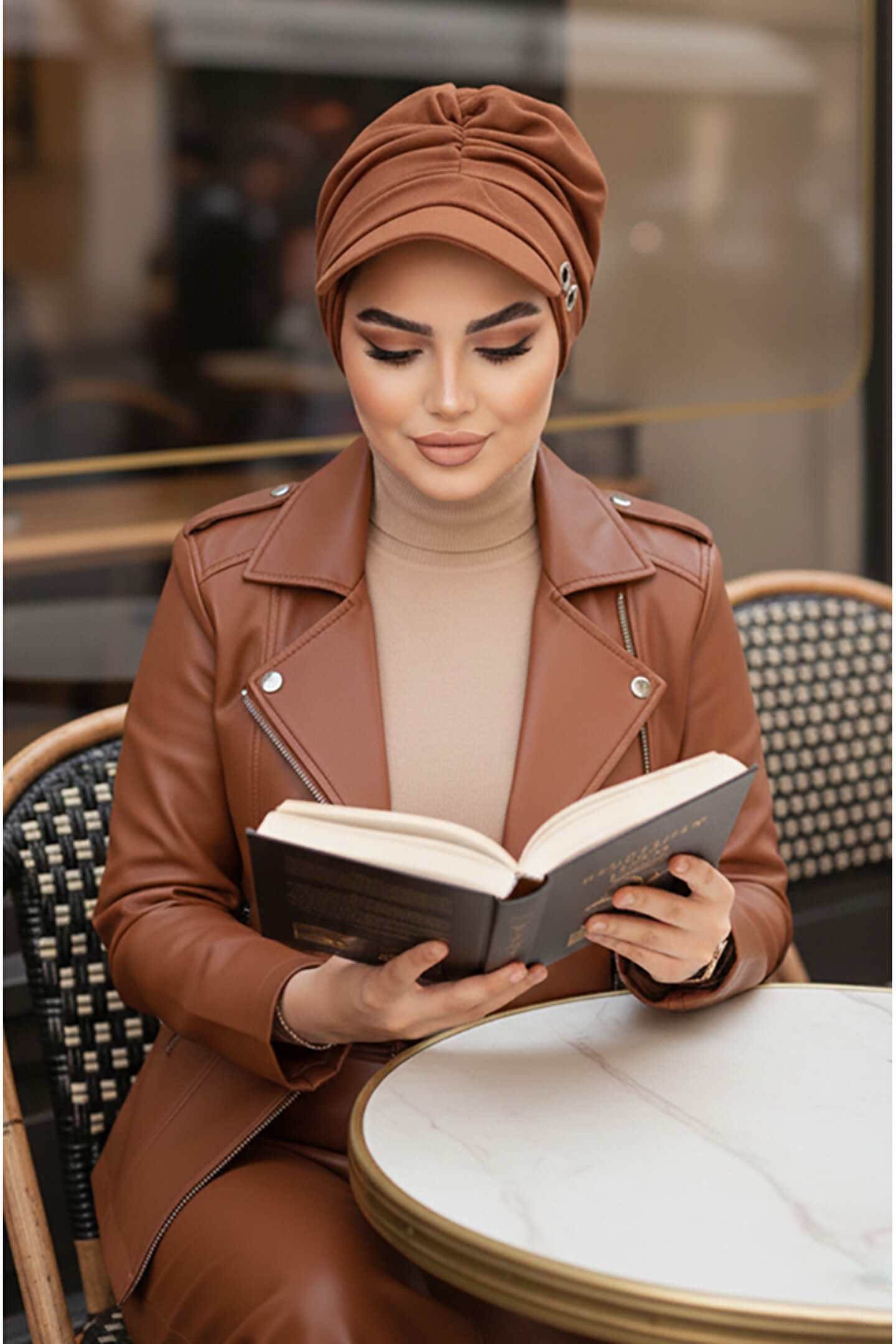 Aişe tesettür Karamel Metal Detaylı Tesettür Şapka Bone