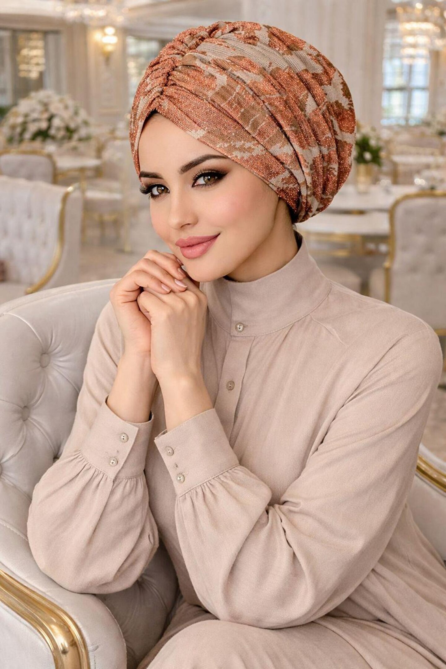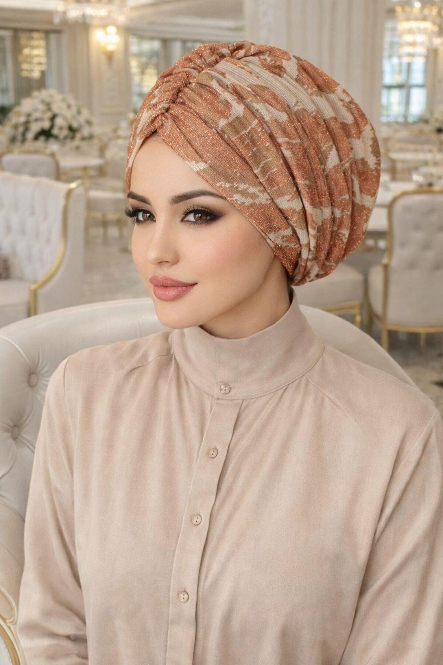 Modern kadının stilini tamamlayan Kemik Bakır Işıltılı Büzgülü Bone, hem günlük hayatta hem de özel davetlerde pratikliği zarafetle buluşturuyor. Özel likralı ışıltılı örme kumaşı sayesinde gün boyu konfor sunarken, göz alıcı rengiyle kombinlerinize sofistike bir dokunuş katıyor.