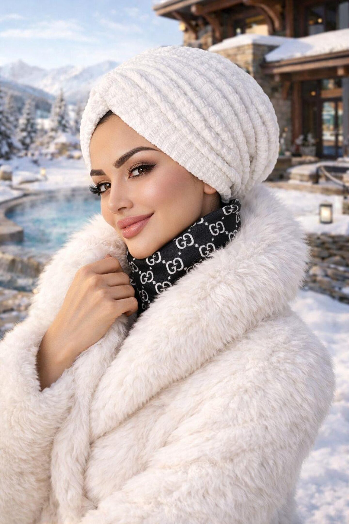 Aişe tesettür Kırık Beyaz Büzgülü Salaş Bone