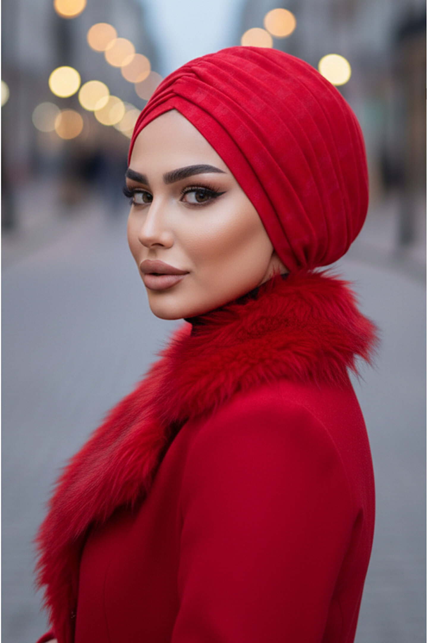 Aişe tesettür Kırmızı Kışlık Büzgülü Bone