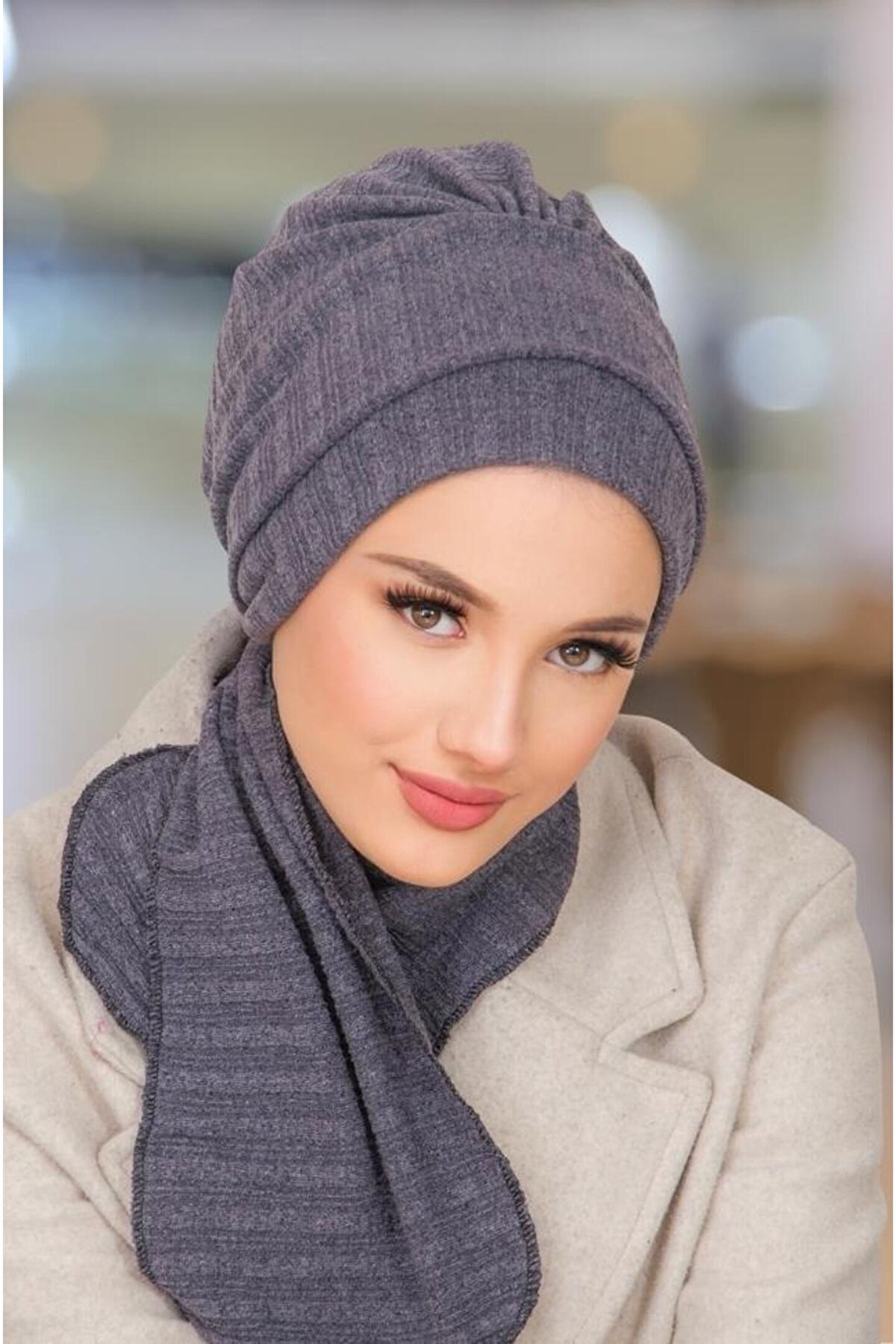 Aişe tesettür Koyu Gri Triko Atkılı Tesettür Bone