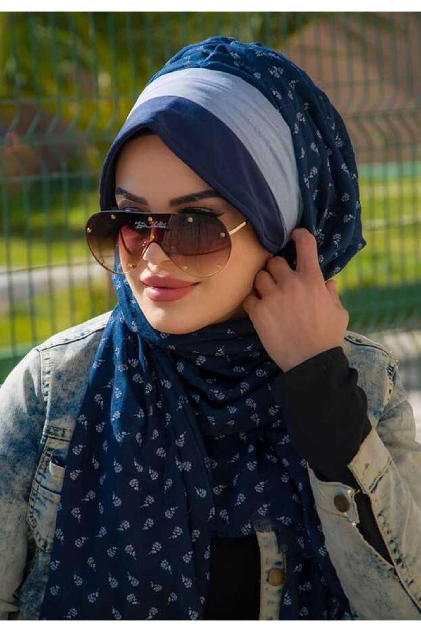 Aişe tesettür Lacivert Bantlı Dantelli Şapka Şal