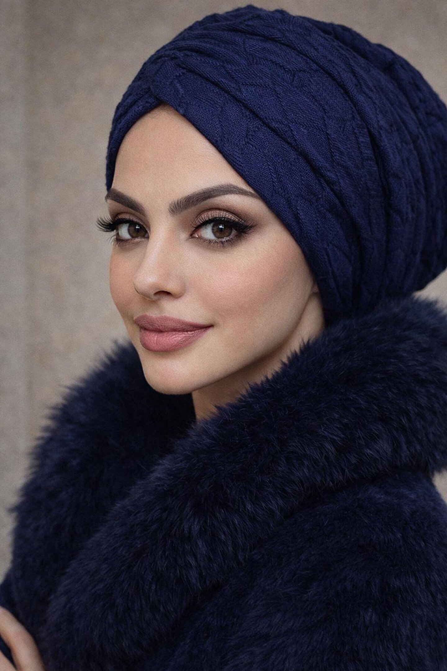 Lacivert Büzgülü Salaş Bone: Kendinden Desenli Çelik Örme Şıklığı