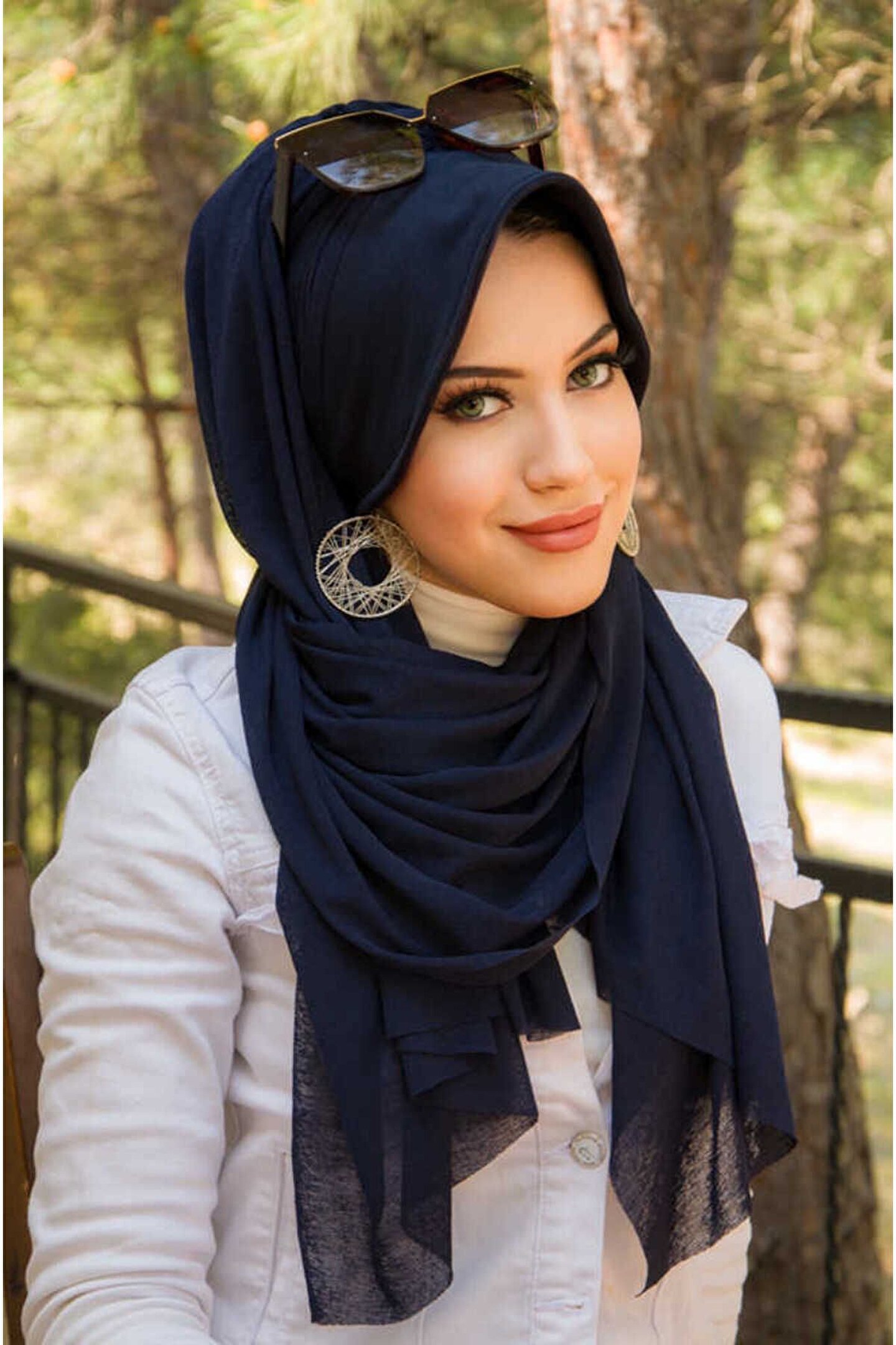 Lacivert Yıldız Şifon Hazır Şal - 50600