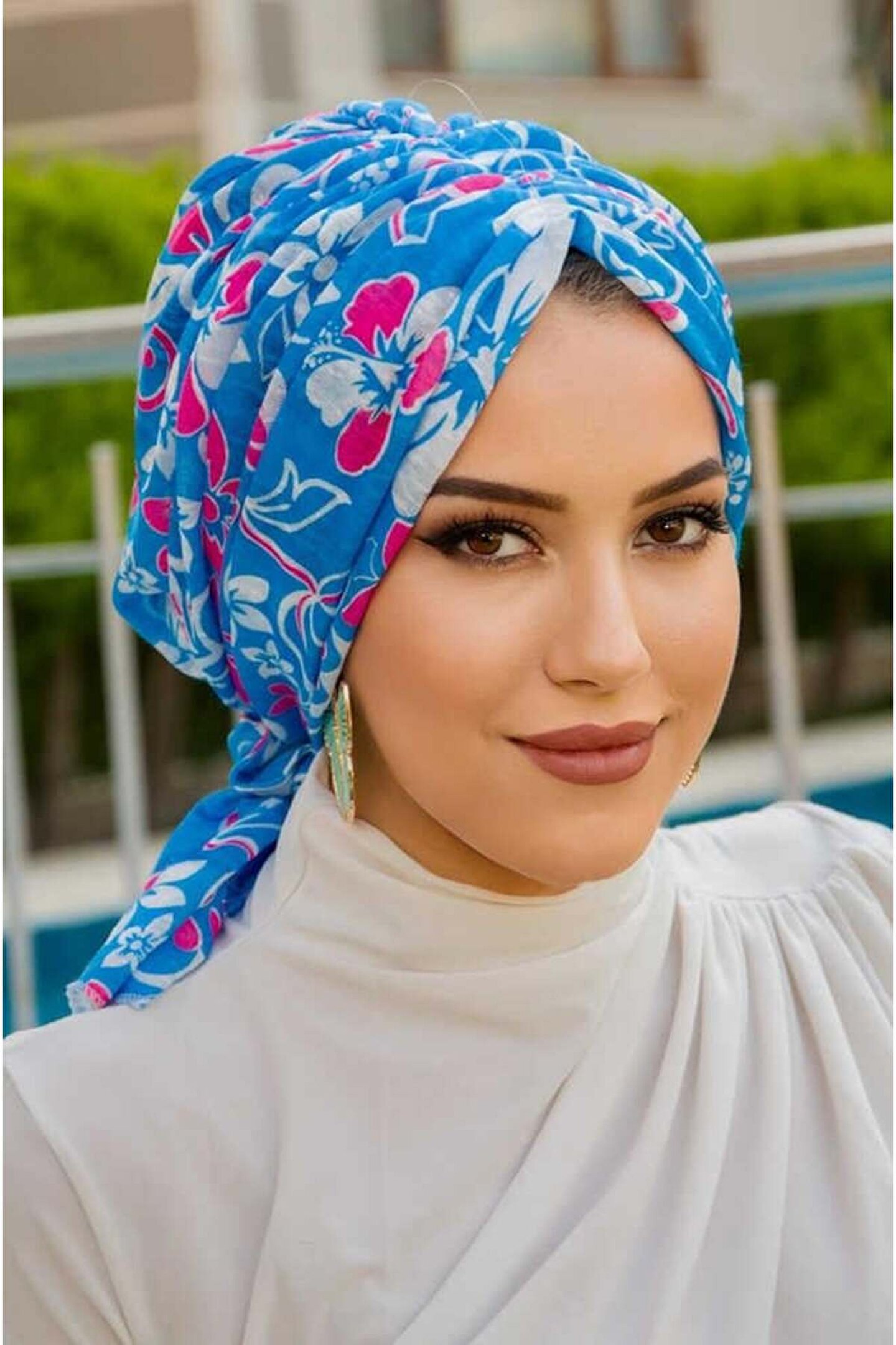 Aişe tesettür Mavi Desenli Tokalı Bone
