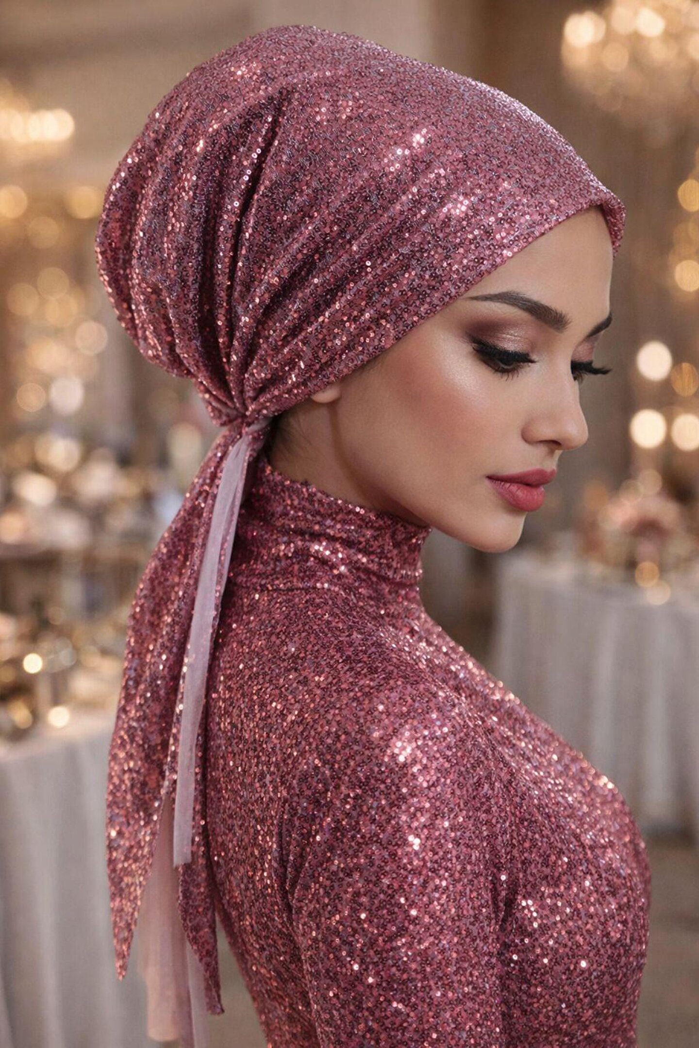 Abiye Şıklığı İçin Tasarlandı: Özel dokusu ve ışıltısı sayesinde en ağır abiye elbiselerinizle bile kusursuz bir bütünlük yakalar. Kuaför masrafına ve saatlerce süren baş bağlama derdine son verir.