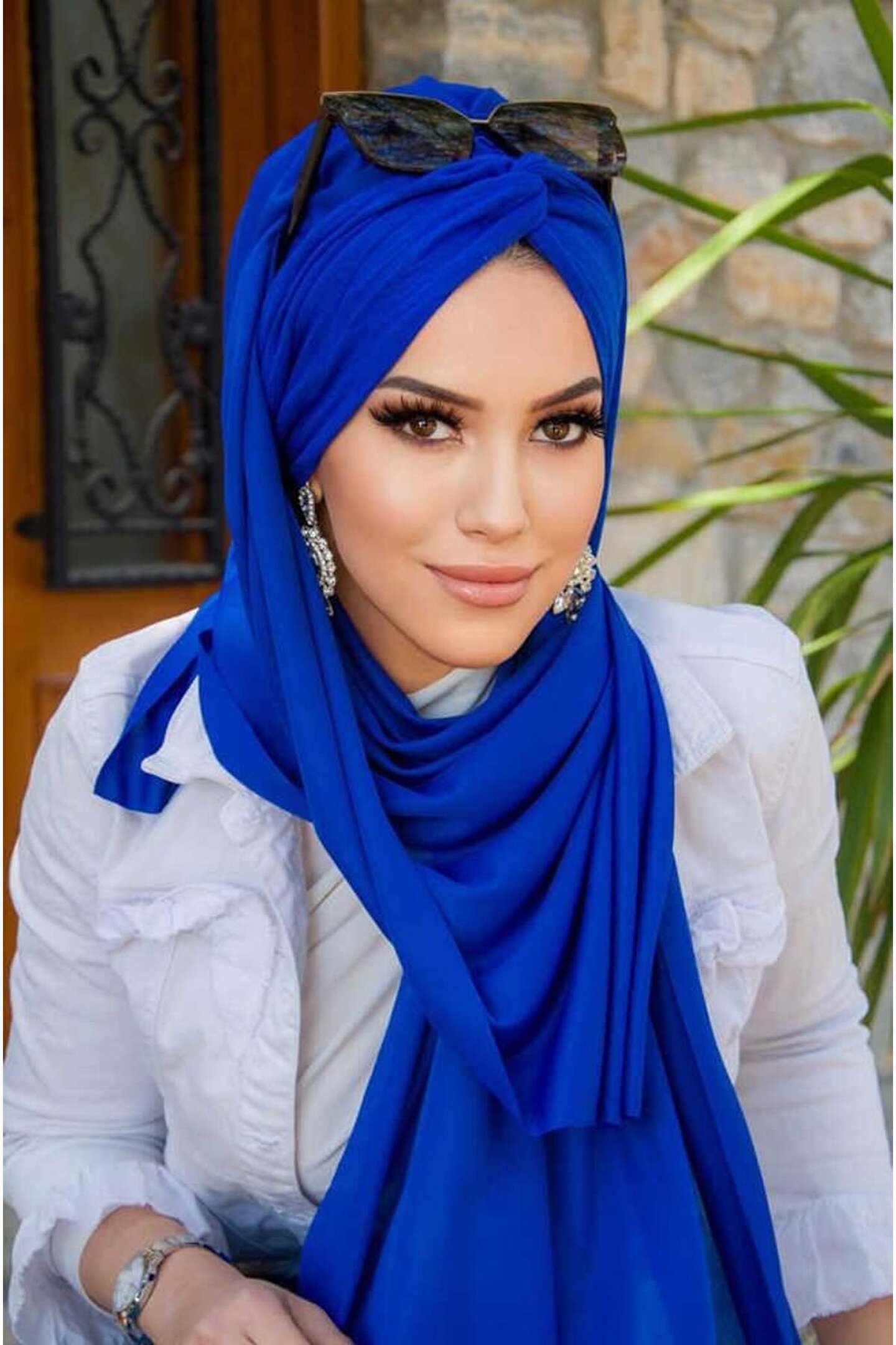 Aişe tesettür Saks Mavi Burgu Hazır Şal