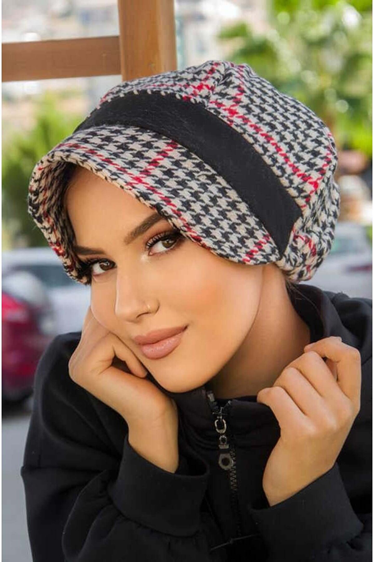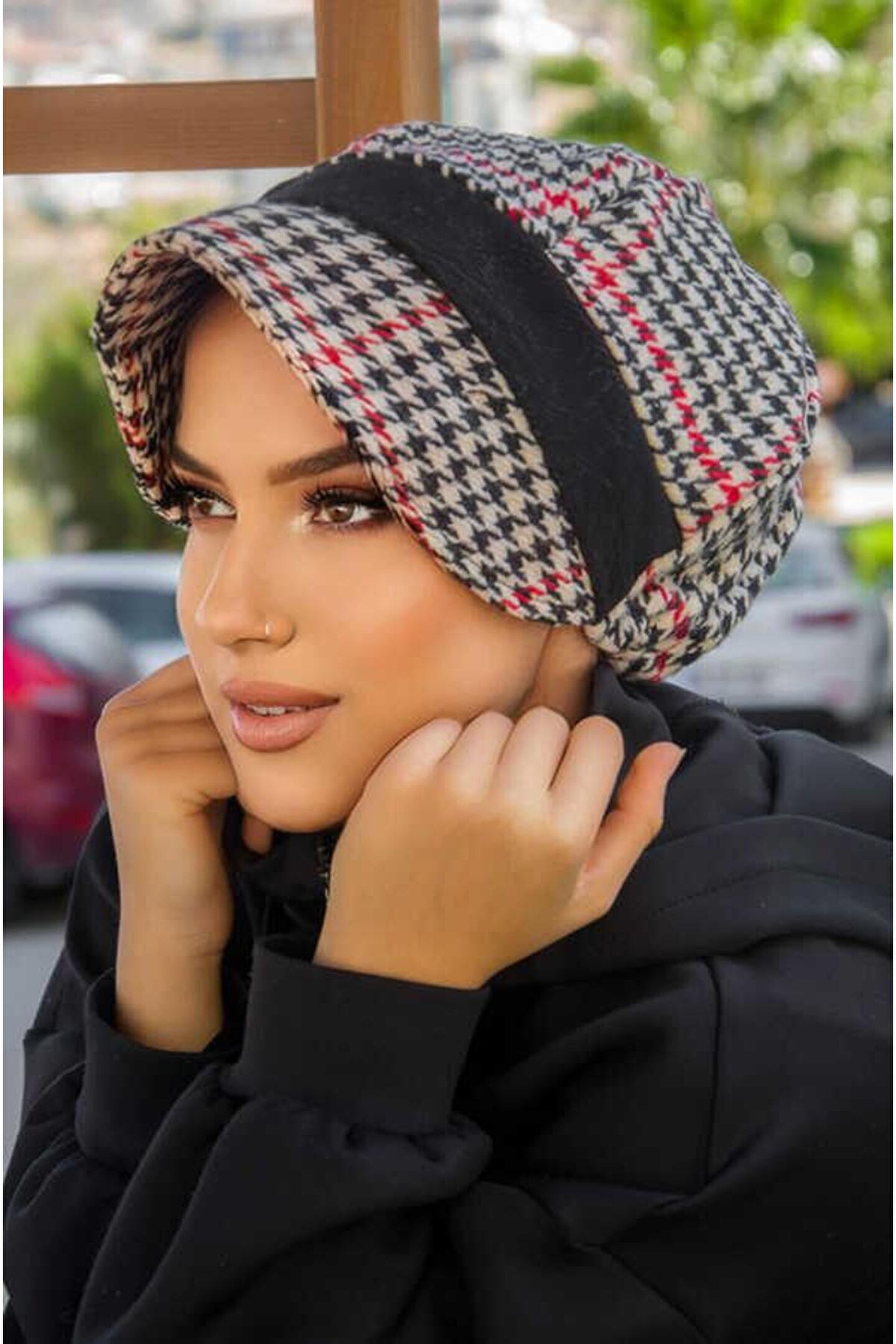 Tesettür giyim koleksiyonuna özel tasarlanmış, şıklığı ve rahatlığı bir arada sunan siyah garnili şapka bone; Sportif aktivitelerinizde veya günlük kullanımda konforlu bir deneyim için ideal, tüm yaş gruplarına hitap eden tasarım; Örme kumaş yapısı sayesinde esnek ve nefes alabilen bir yapıya sahip, uzun süreli kullanımlarda bile rahatlık sağlar; Kolay bakım imkanı sunan yıkama talimatları ile pratik kullanım; 'type 1' yıkama talimatına uygun şekilde temizlenebilir; Kışlık dokuma materyal bileşeni ile soğuk havalarda başınızı sıcak tutarken şık görünümünüzden ödün vermezsiniz;