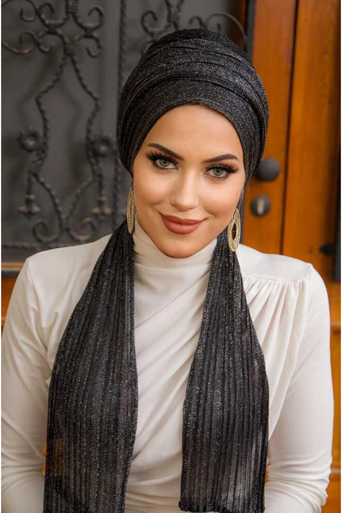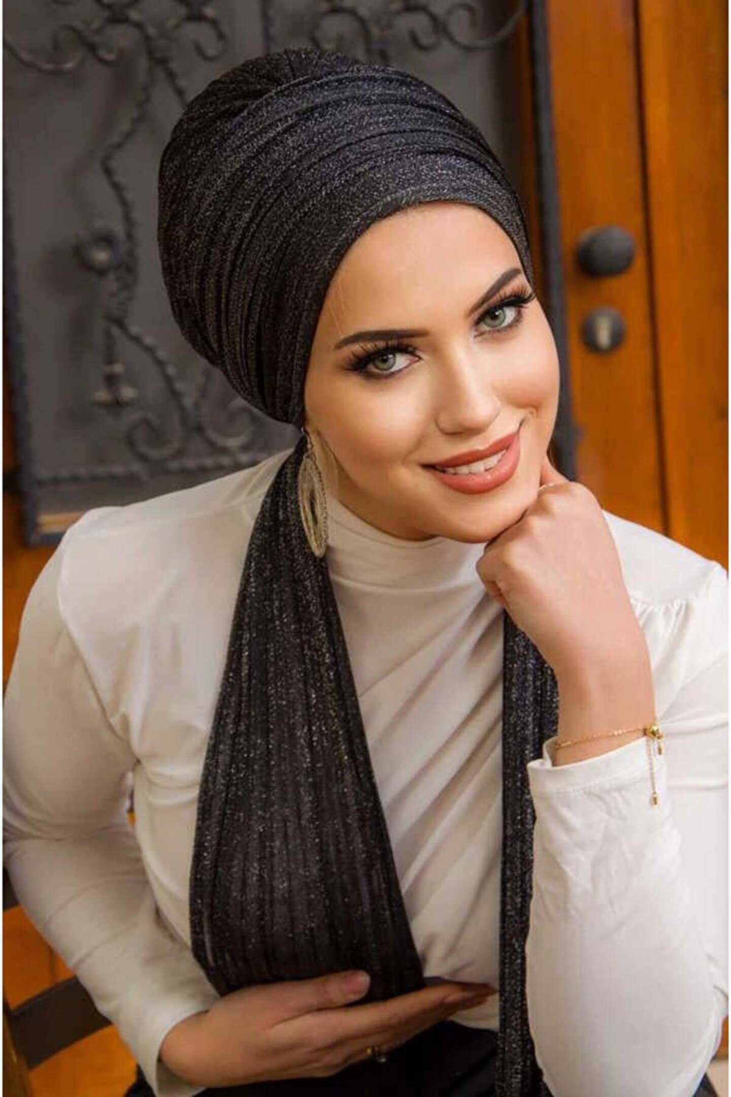Tesettür giyim koleksiyonuna özel tasarlanmış, şıklığı ve zarafeti ön planda tutan siyah simli piliseli abiye atkılı bone; Örme kumaş yapısı ile konforlu bir kullanım sunar ve gün boyu rahatlık sağlar; Şık ve gece ortamları için ideal bir aksesuar olarak, özel davetlerde ve etkinliklerde göz alıcı bir görünüm kazandırır; %100 polyester materyal bileşeni sayesinde dayanıklılık ve uzun ömürlü kullanım vaat eder; Her yaş grubuna hitap eden tasarımıyla geniş bir kullanıcı yelpazesine sahiptir; gençlerden yetişkinlere herkes için uygundur; Kolay bakım imkanı sunan 30 derecede yıkama talimatına uygun şekilde temizlenebilir; böylece hijyenik ve pratik bir kullanım sağlar;