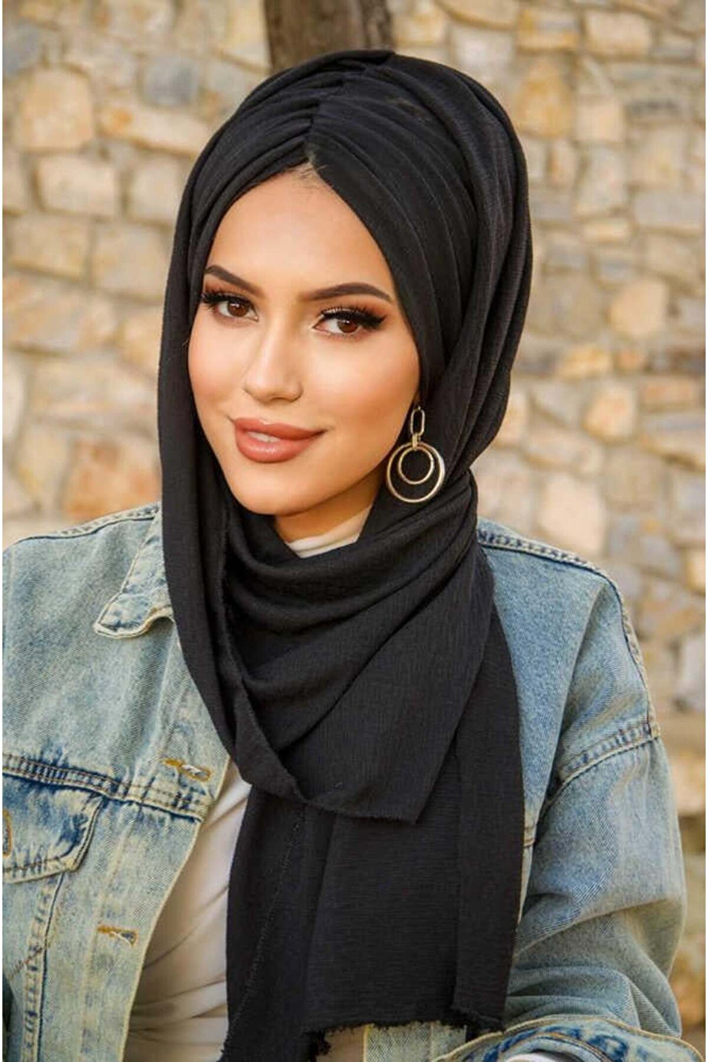 Aişe tesettür Siyah Kelebek Model Büzgülü Bone Şal