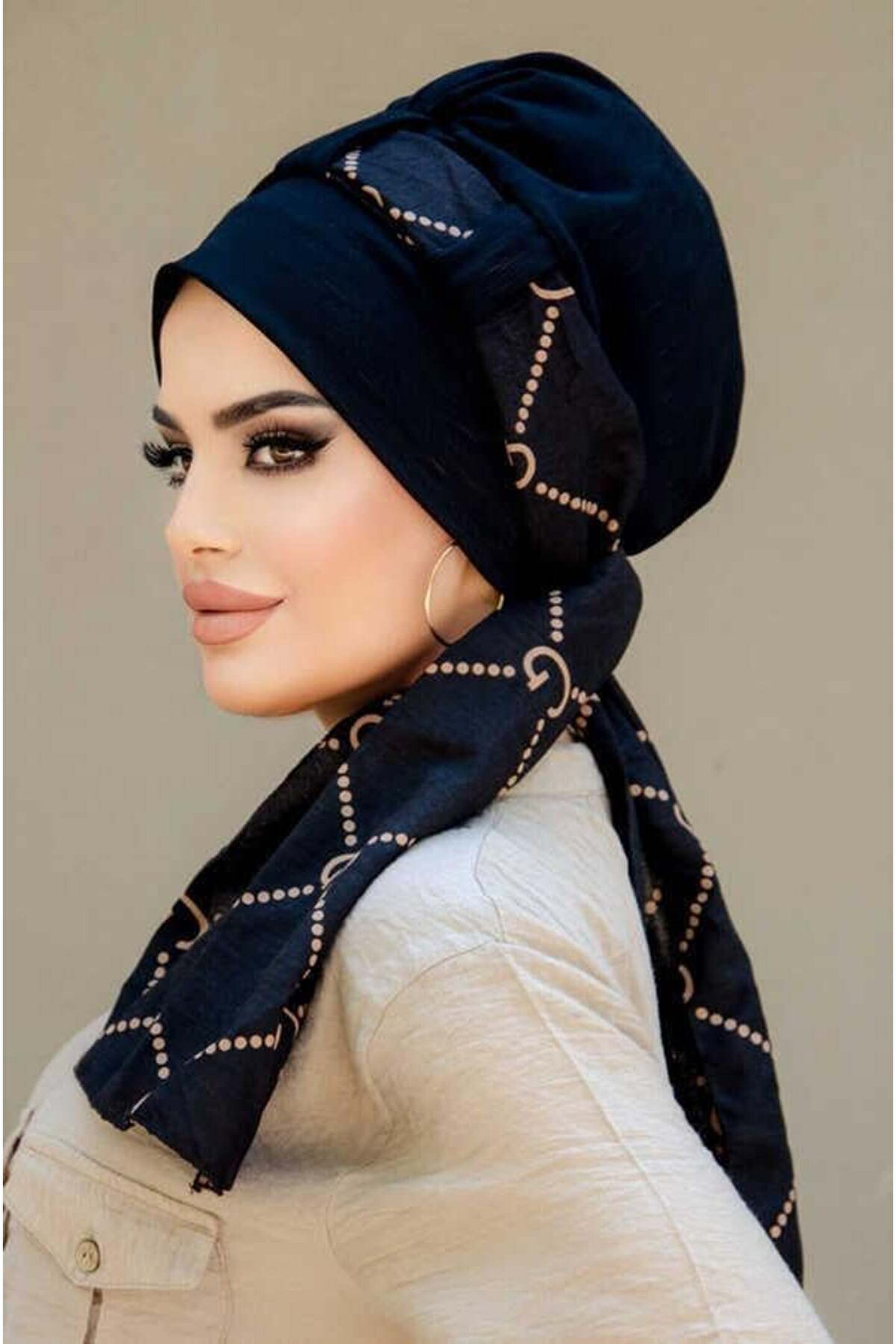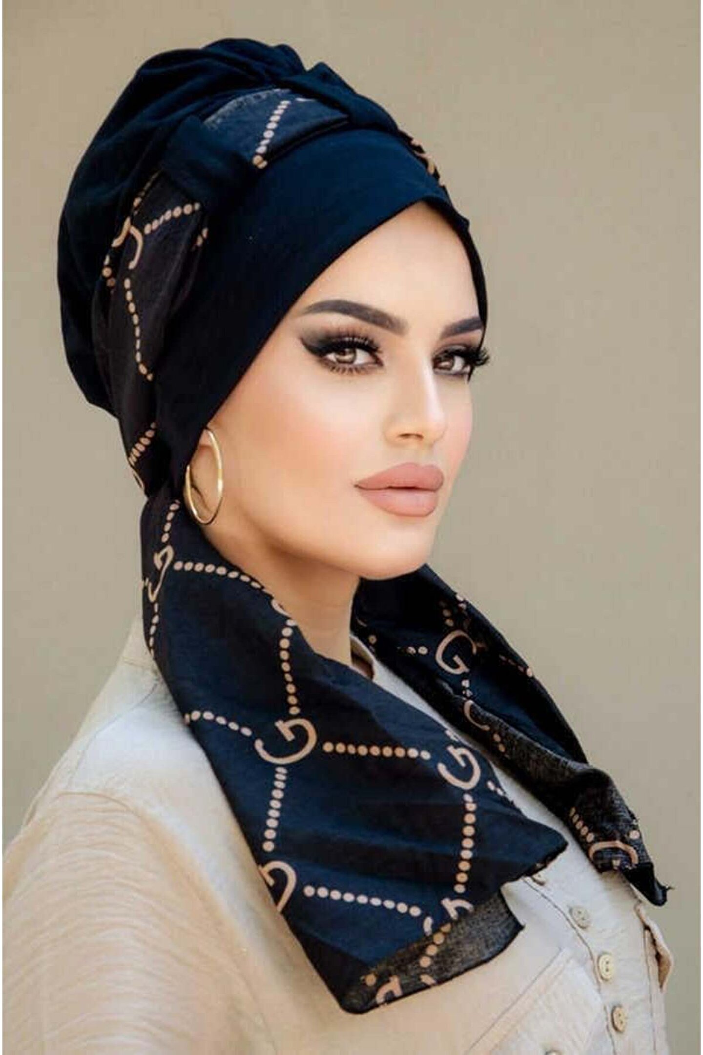 Aişe tesettür Siyah Marka Desen Fularlı Bone