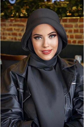 Aişe tesettür Siyah Scuba Atkılı Vintage Şapka