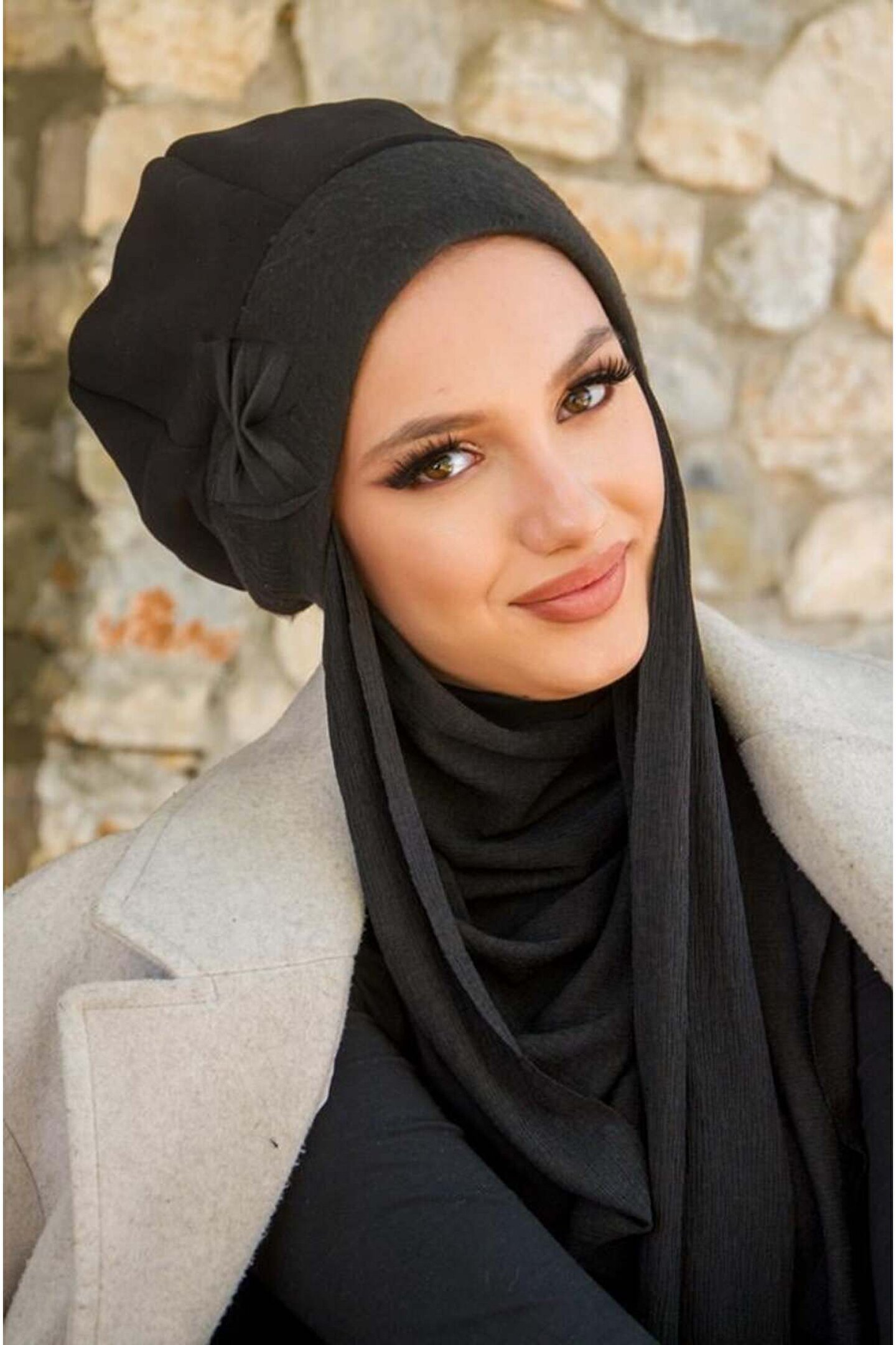 Aişe tesettür Siyah Tesettür Bere ve Şal Takım