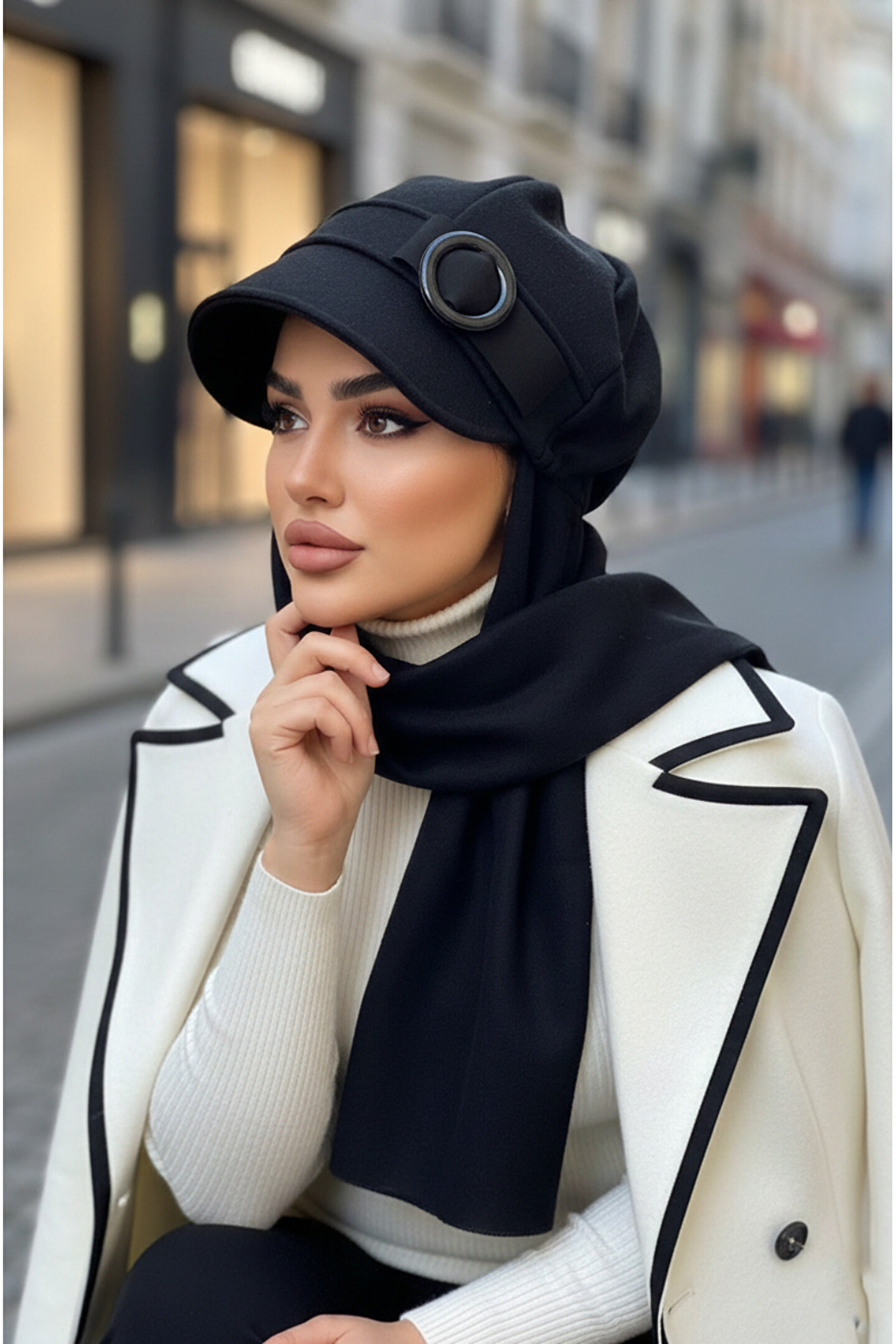 Aişe tesettür Siyah Tokalı Tesettür Şapka