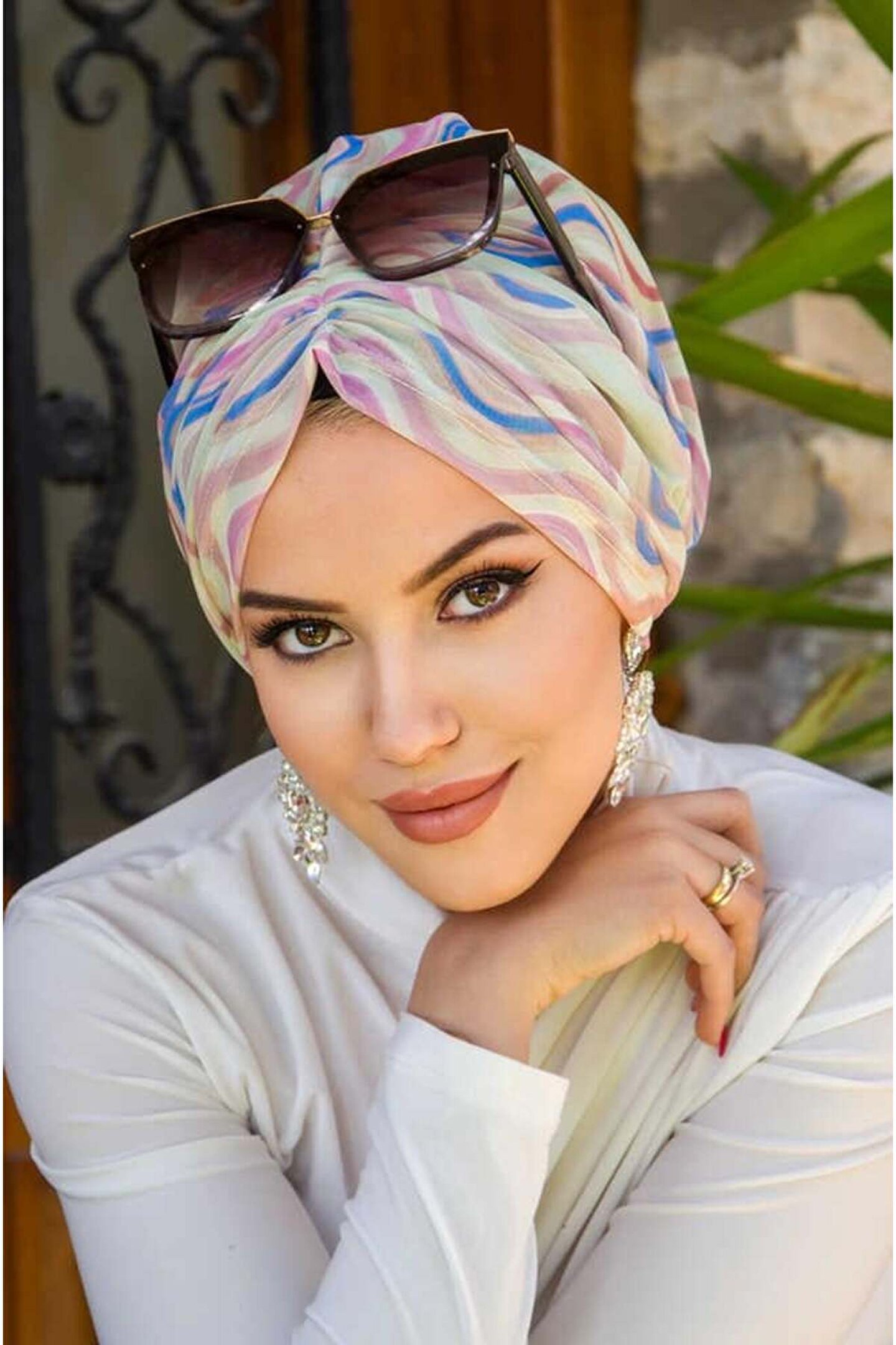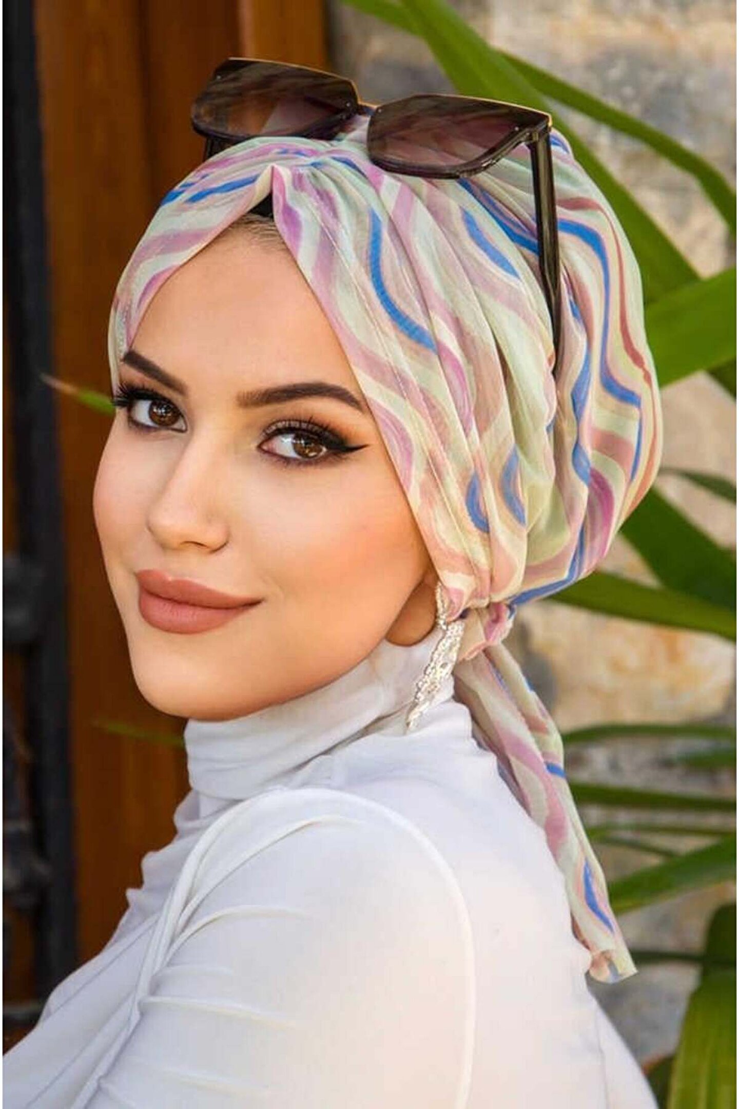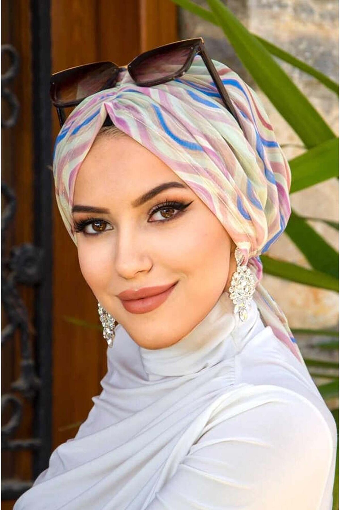 Aişe tesettür Soft Renkler Geometrik Desen Tül Tokalı Bone