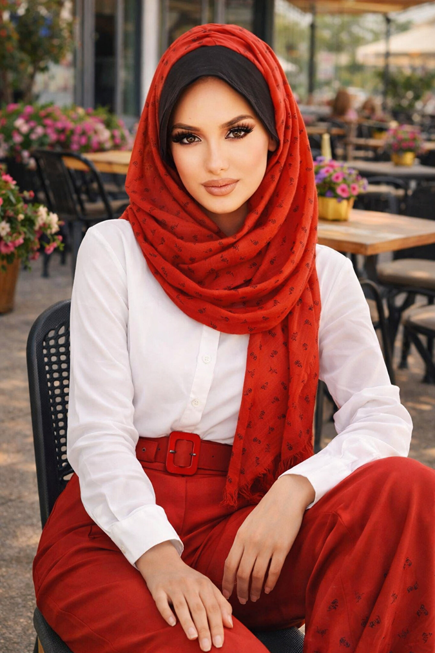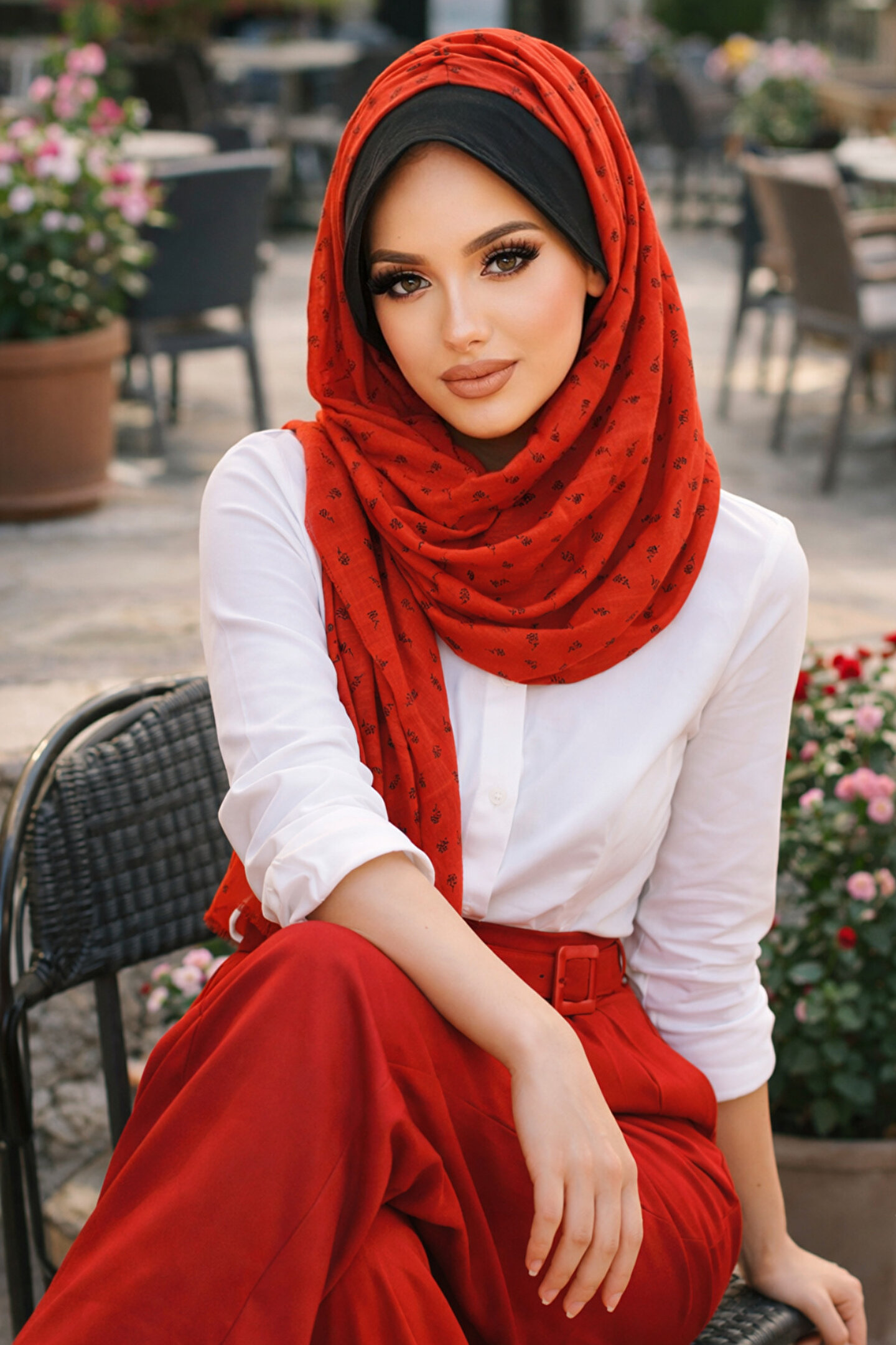 Aişe tesettür Taba Çiçek Baskılı Şapkalı Şal