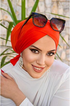 Aişe tesettür Turuncu Çapraz Bone - Deniz - Havuz Bonesi