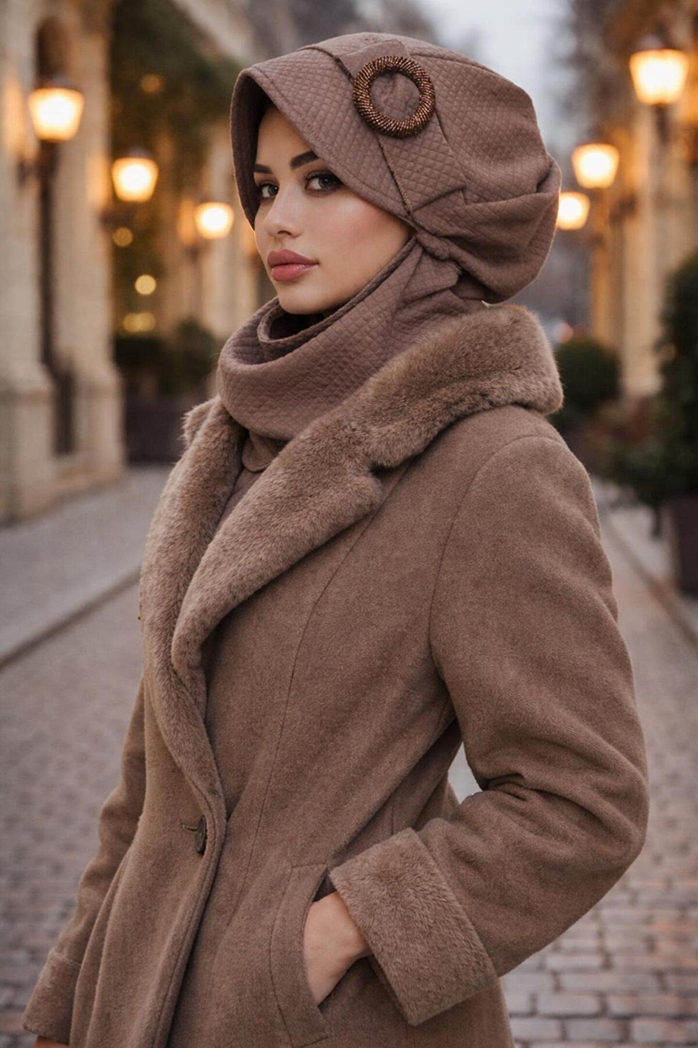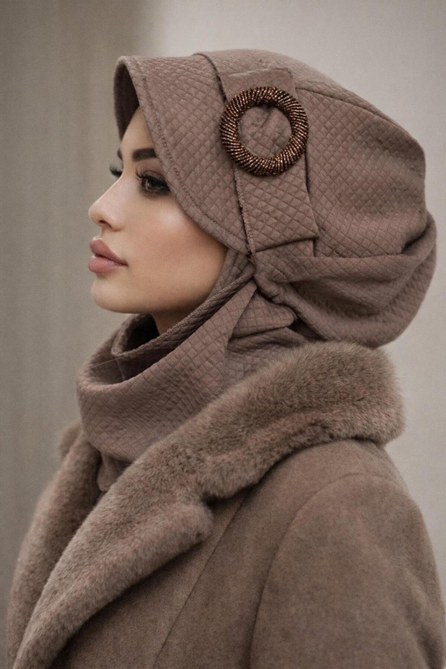 Aişe tesettür Vizon Tokalı Atkılı Tesettür Şapka