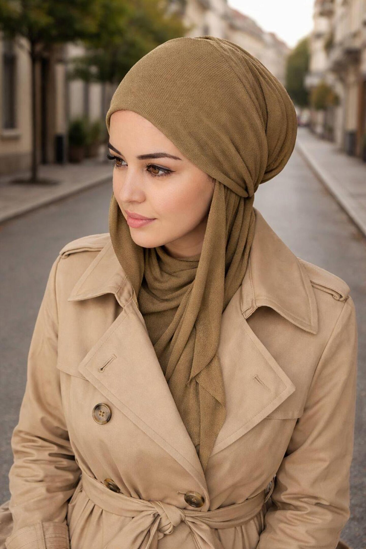 Aişe tesettür Zeytuni Kelebek Bone Şal