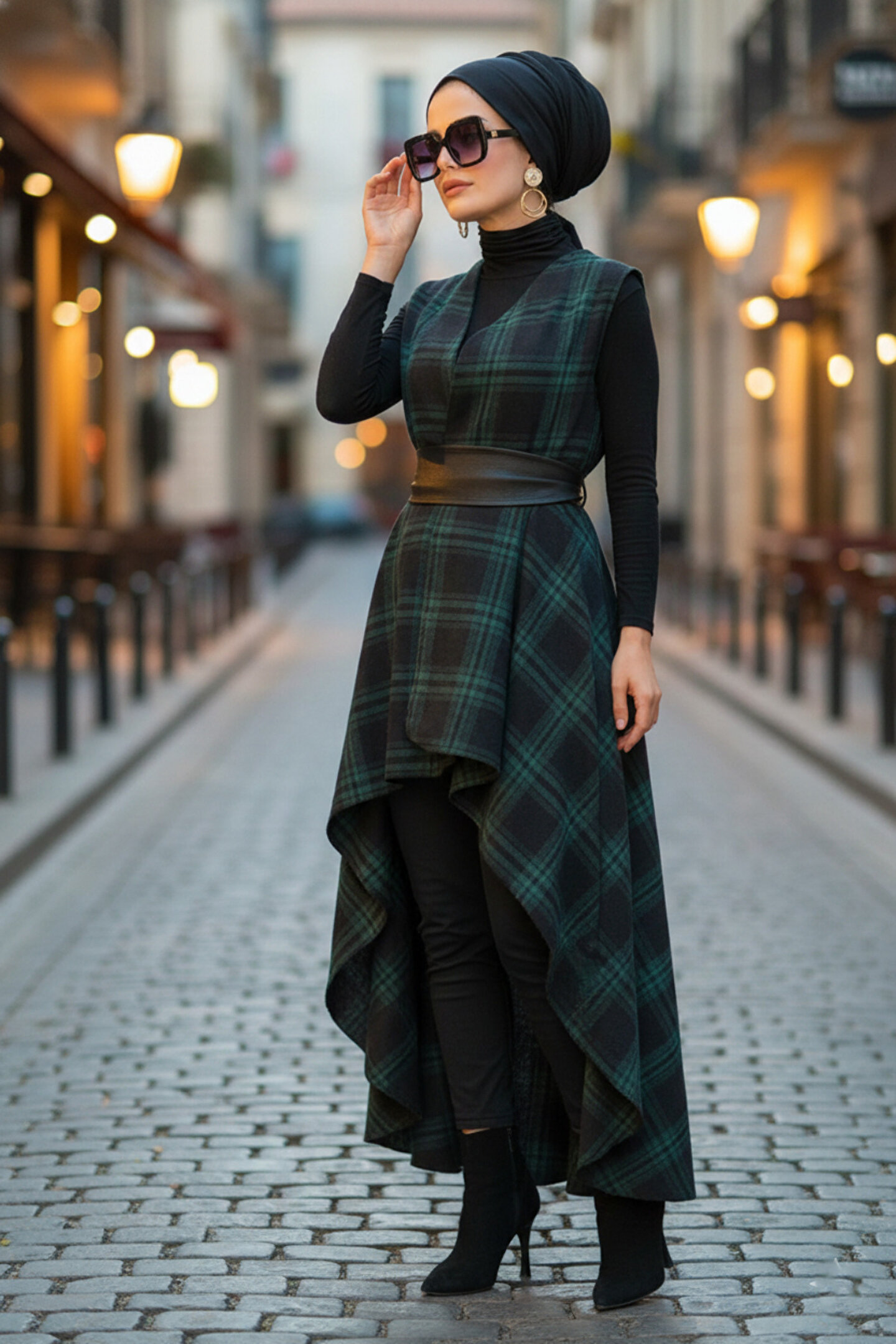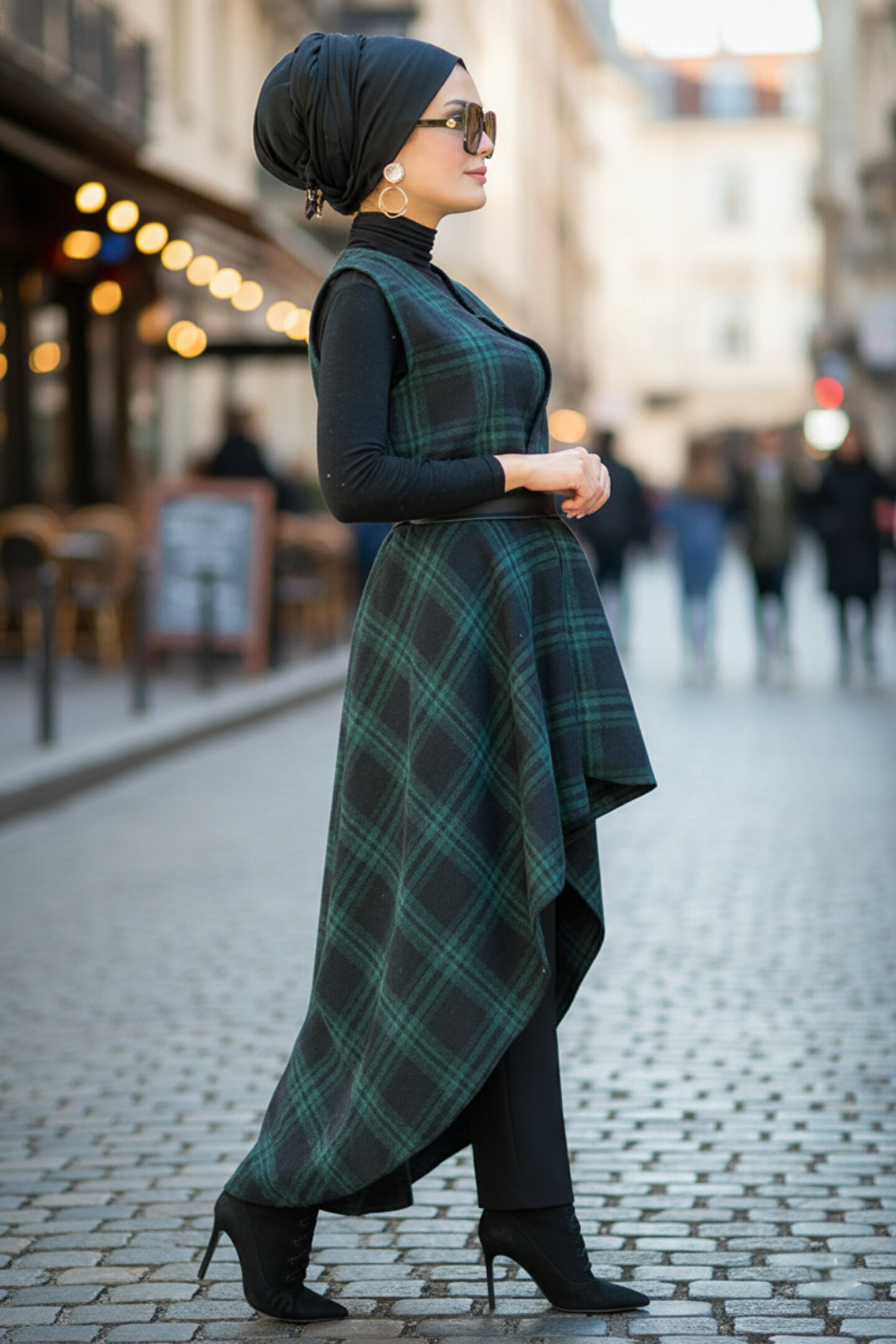 - Günlük kullanıma uygun tasarımıyla her ortamda rahatlıkla tercih edilebilen zümrüt siyah ekoseli yelek, şıklığı ve konforu bir arada sunar; - Orta kalınlıkta kumaşı sayesinde mevsim geçişlerinde ideal bir seçenektir; ne çok sıcak tutar ne de serin tutar; - Standart kol tipi ve regular boy kesimi ile vücut hatlarını saran ancak sıkmayan bir yapıya sahiptir; - Yün karışımı materyali sayesinde ısıyı muhafaza ederken nefes alabilir özelliğiyle gün boyu konfor sağlar; - Tüm yaş gruplarına hitap eden tasarımıyla geniş bir kullanıcı yelpazesine sahiptir; herkes için uygun bir seçimdir; - Kemer detayı bel bölgesini vurgulayarak feminen bir siluet oluştururken, kuşak detayı ise kişisel tercihe göre ayarlama imkanı tanır; - Uzun kollu yapısıyla mevsimsel değişikliklere karşı koruma sağlar ve gömlek yakası ile klasik bir görünüm sunar; - Regular kalıp, rahat hareket etme özgürlü;