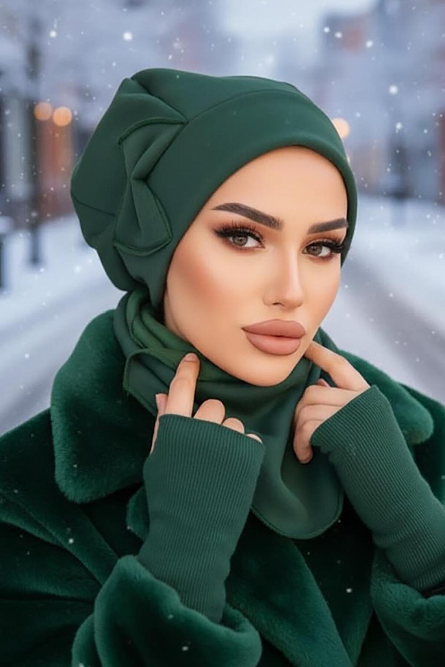 Aişe tesettür Zümrüt Yeşili Fiyonklu Tesettür Bere