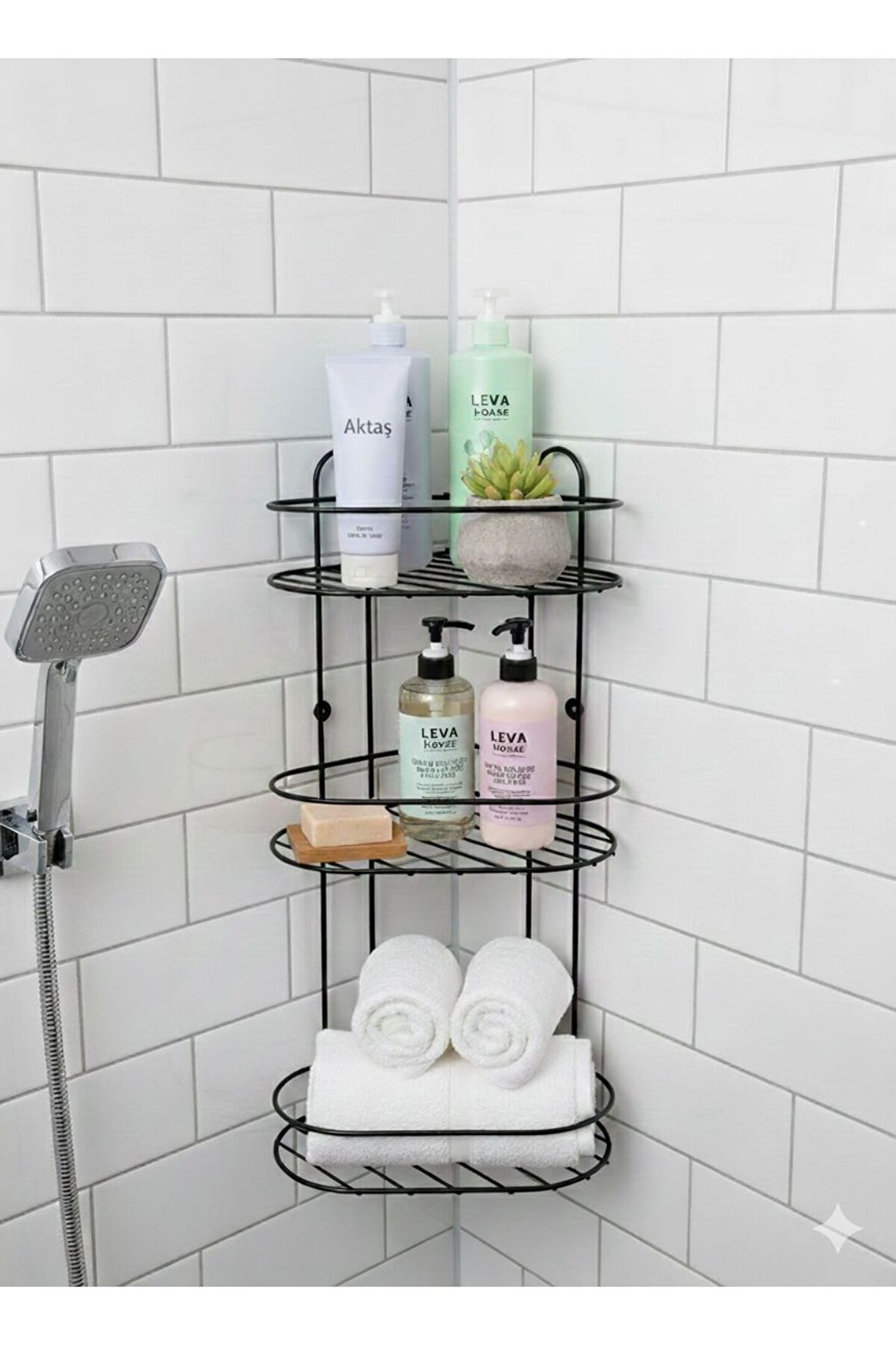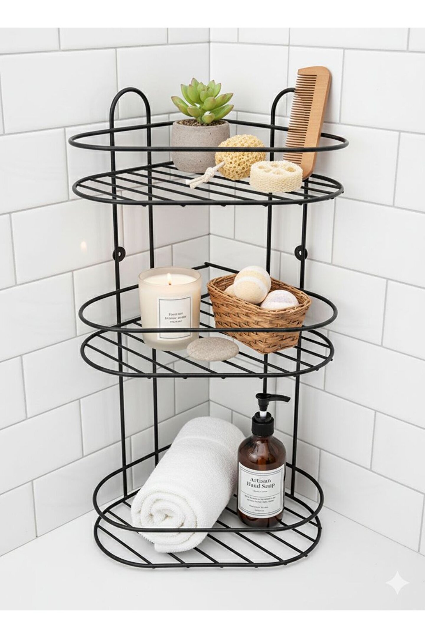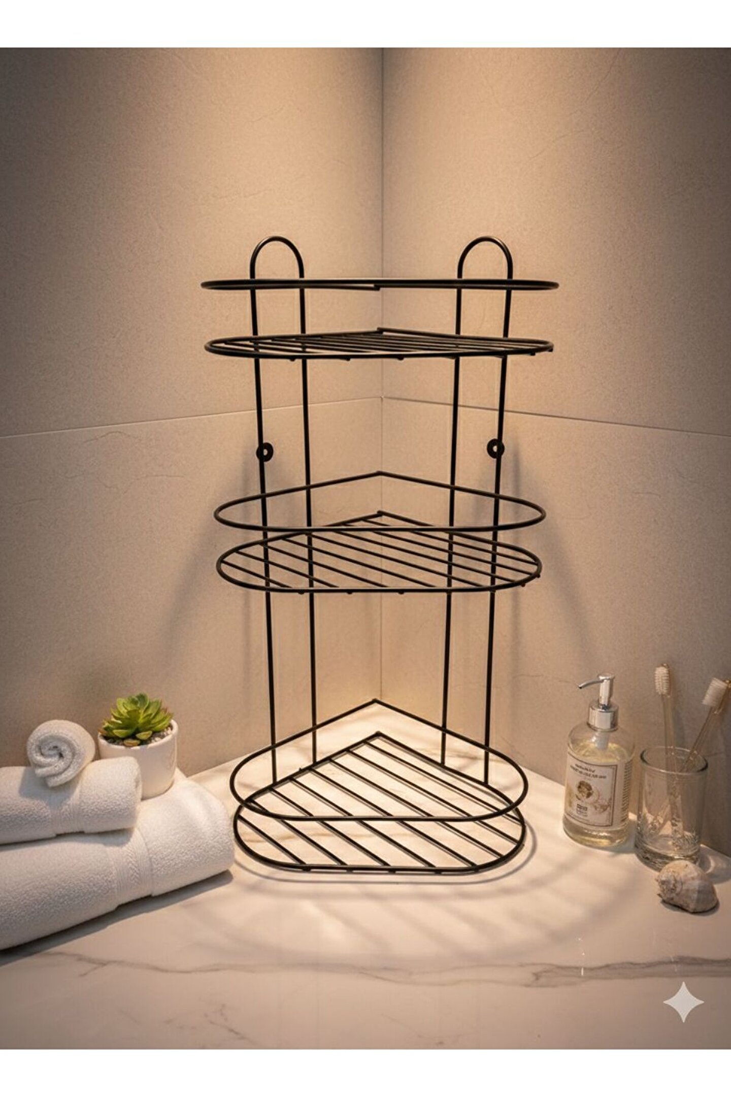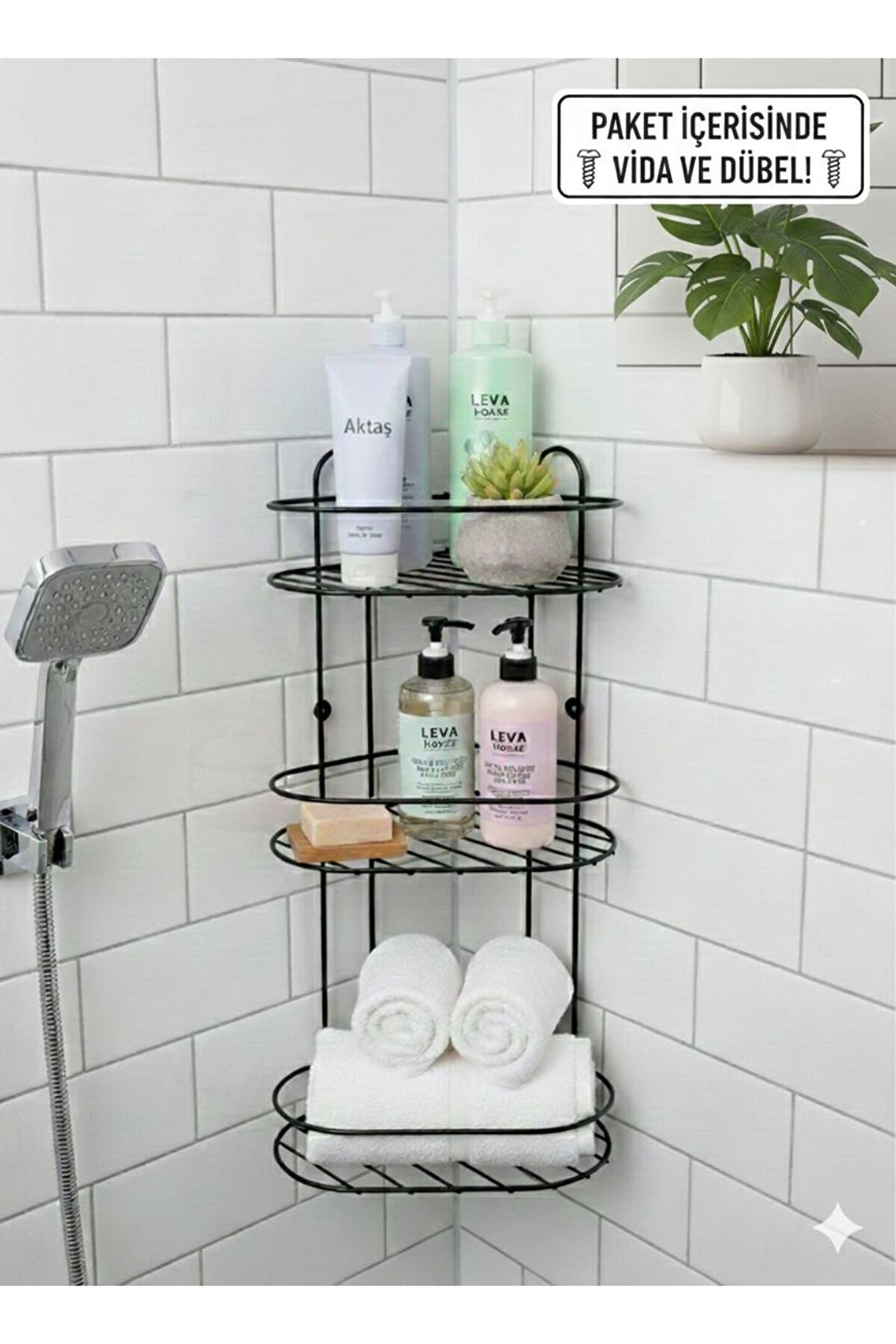Banyonuzda Yer Açın: Şık ve Dayanıklı 3 Katlı Köşe Düzenleyici Banyonuzdaki dağınıklığa son verecek, modern tasarımıyla dekorasyonunuzu tamamlayacak 3 Katlı Köşelik şimdi tam set olarak sizlerle! İster duş içerisinde şampuanlık olarak, ister banyo köşesinde düzenleyici olarak kullanın.; Üne Çıkan Özellikler: * İdeal Boyutlar: 50 cm yüksekliği ve geniş raf hacmiyle en büyük şampuan şişelerini bile rahatlıkla taşır.; * Eksiksiz Paket: Ürünle birlikte gönderilen dübel ve vida seti sayesinde ekstra malzeme aramanıza gerek kalmadan hemen montajını yapabilirsiniz.; * Paslanmaya Karşı Dirençli: Statik siyah boya kaplaması, nemli banyo ortamlarında uzun ömürlü kullanım sağlar.; * Kolay Temizlik: Izgaralı raflar su tutmaz, kireç ve leke oluşumunu minimuma indirir.; Teknik Detaylar: * Yükseklik: 50 cm * Genişlik: 26 cm * Derinlik: 23 cm * Renk: Mat Siyah * Paket İçeriği: 1 adet 3 Katlı Metal Köşelik, 1 Takım Montaj Vidası ve Dübeli 1 takım yapışkanı