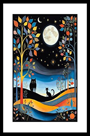 AKTÜEL POSTER Ay Işığı ve Kediler Digital Art ( ÇERÇEVESİZ - ÇERÇEVE YOKTUR ) ( ULTRA HD ) FOLYO AFİŞ - POSTER