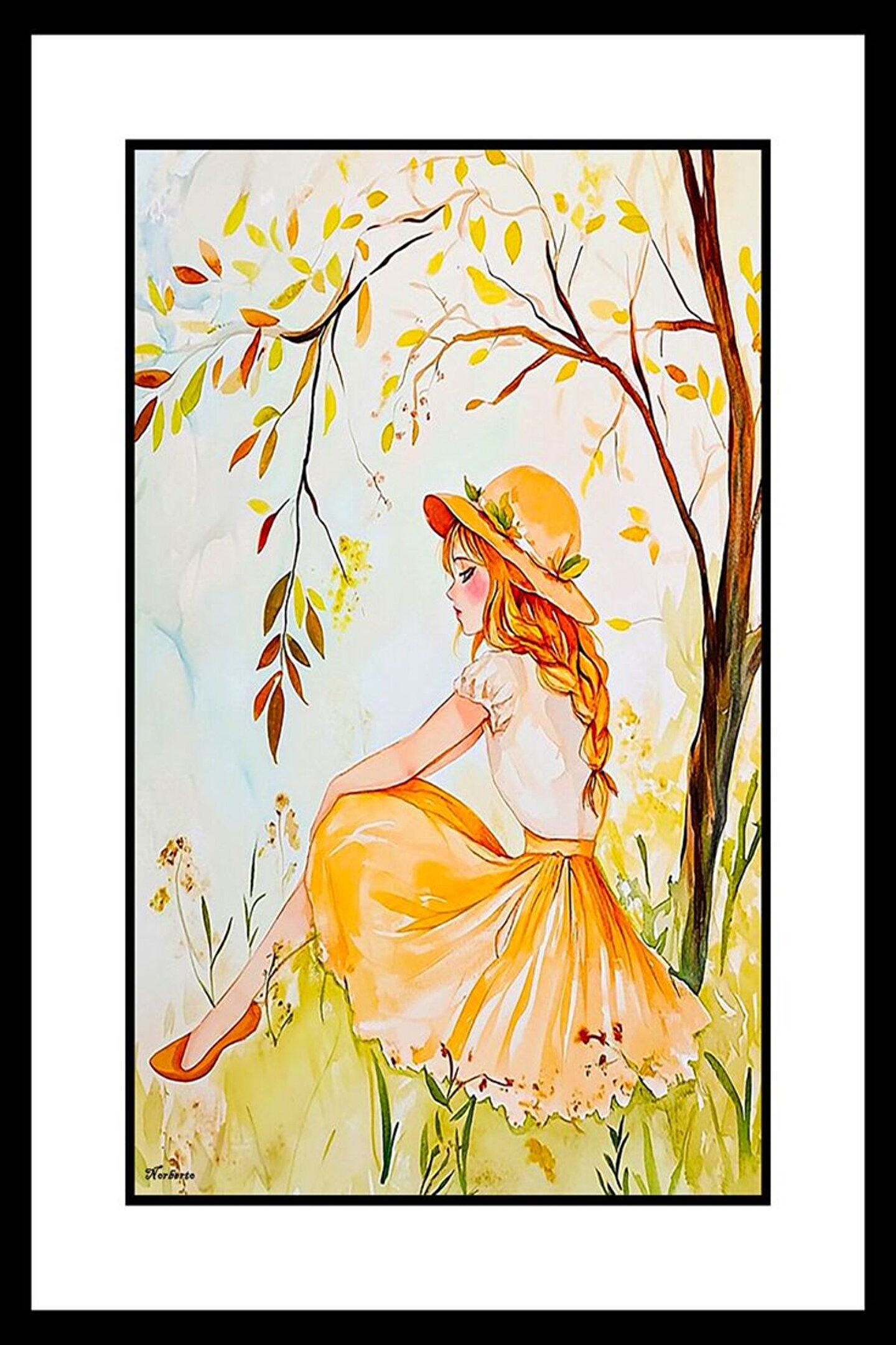 Bahçedeki Kız Digital Art ( ÇERÇEVESİZ - ÇERÇEVE YOKTUR ) ( ULTRA HD ) FOLYO AFİŞ - POSTER