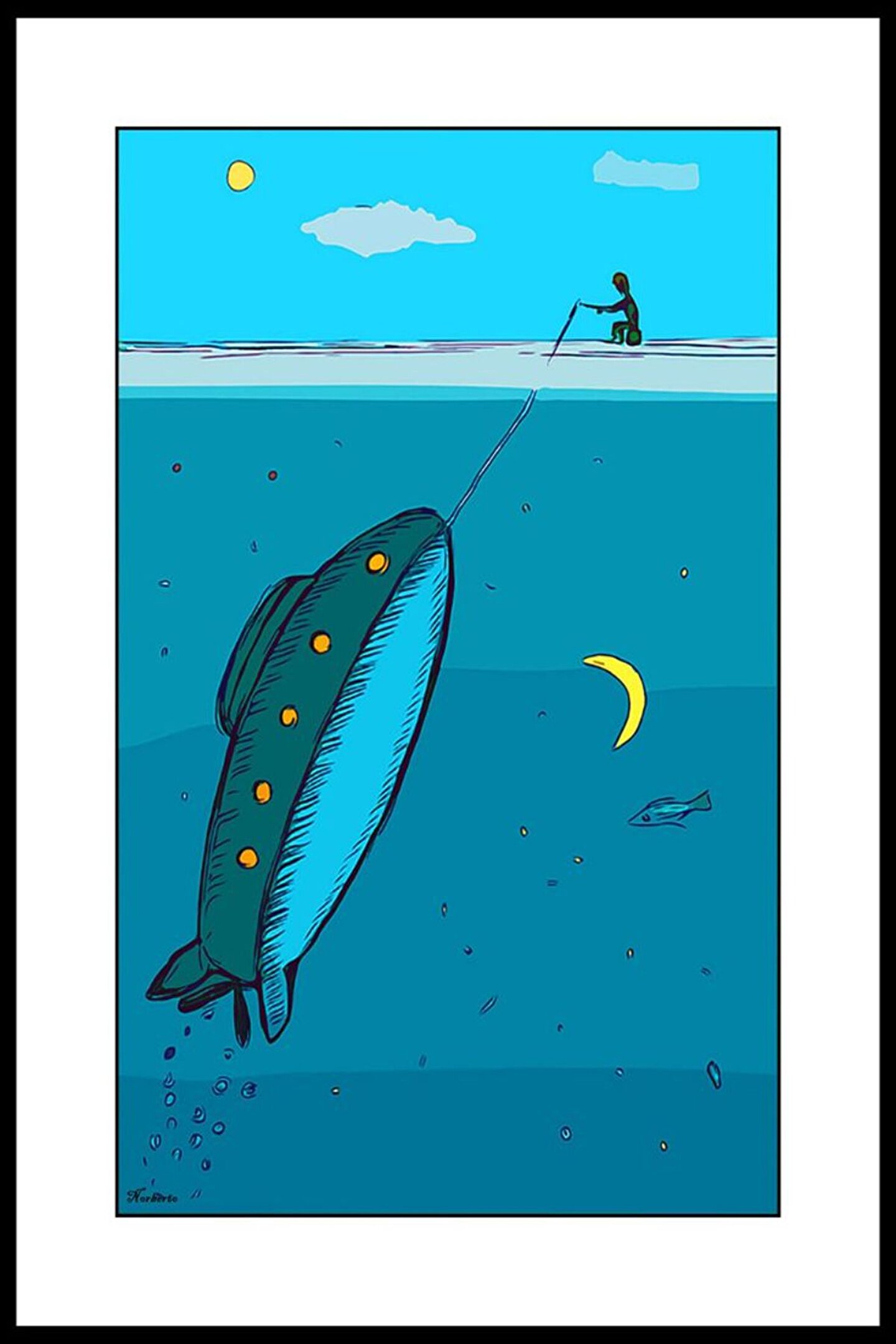 Balık Tutan Adam Digital Art ( ÇERÇEVESİZ - ÇERÇEVE YOKTUR ) ( ULTRA HD ) FOLYO AFİŞ - POSTER