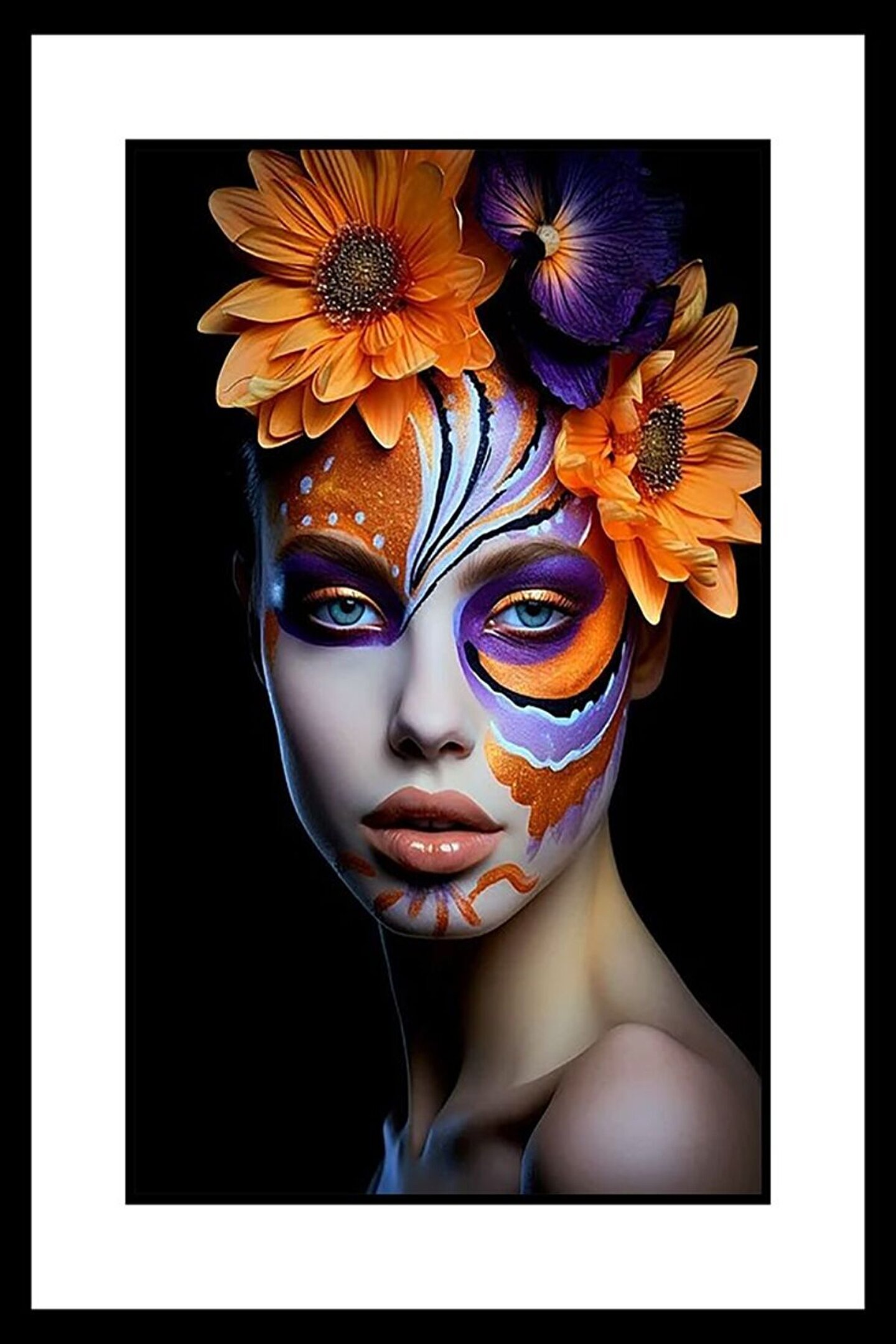 AKTÜEL POSTER Çiçek Desenli Kız Digital Art ( ÇERÇEVESİZ - ÇERÇEVE YOKTUR ) ( ULTRA HD ) FOLYO AFİŞ - POSTER