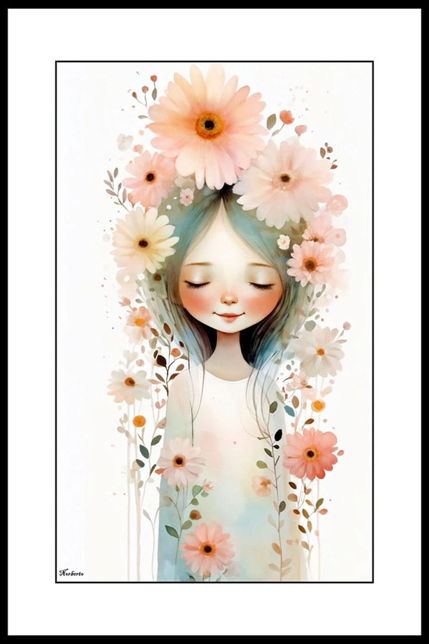 Çiçekçi Kız Digital Art ( ÇERÇEVESİZ - ÇERÇEVE YOKTUR ) ( ULTRA HD ) FOLYO AFİŞ - POSTER