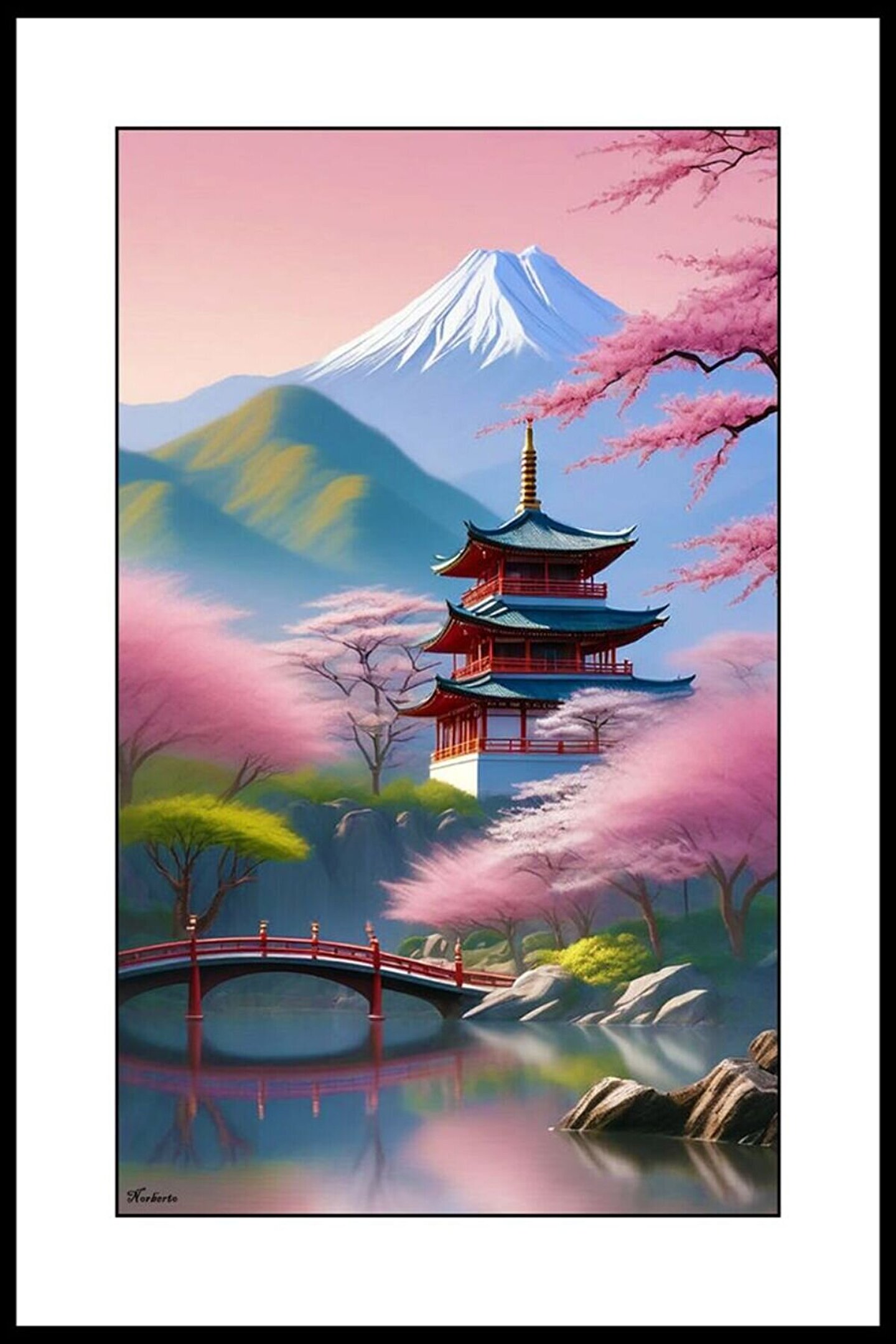 Dağdaki Japon Evi Digital Art ( ÇERÇEVESİZ - ÇERÇEVE YOKTUR ) ( ULTRA HD ) FOLYO AFİŞ - POSTER