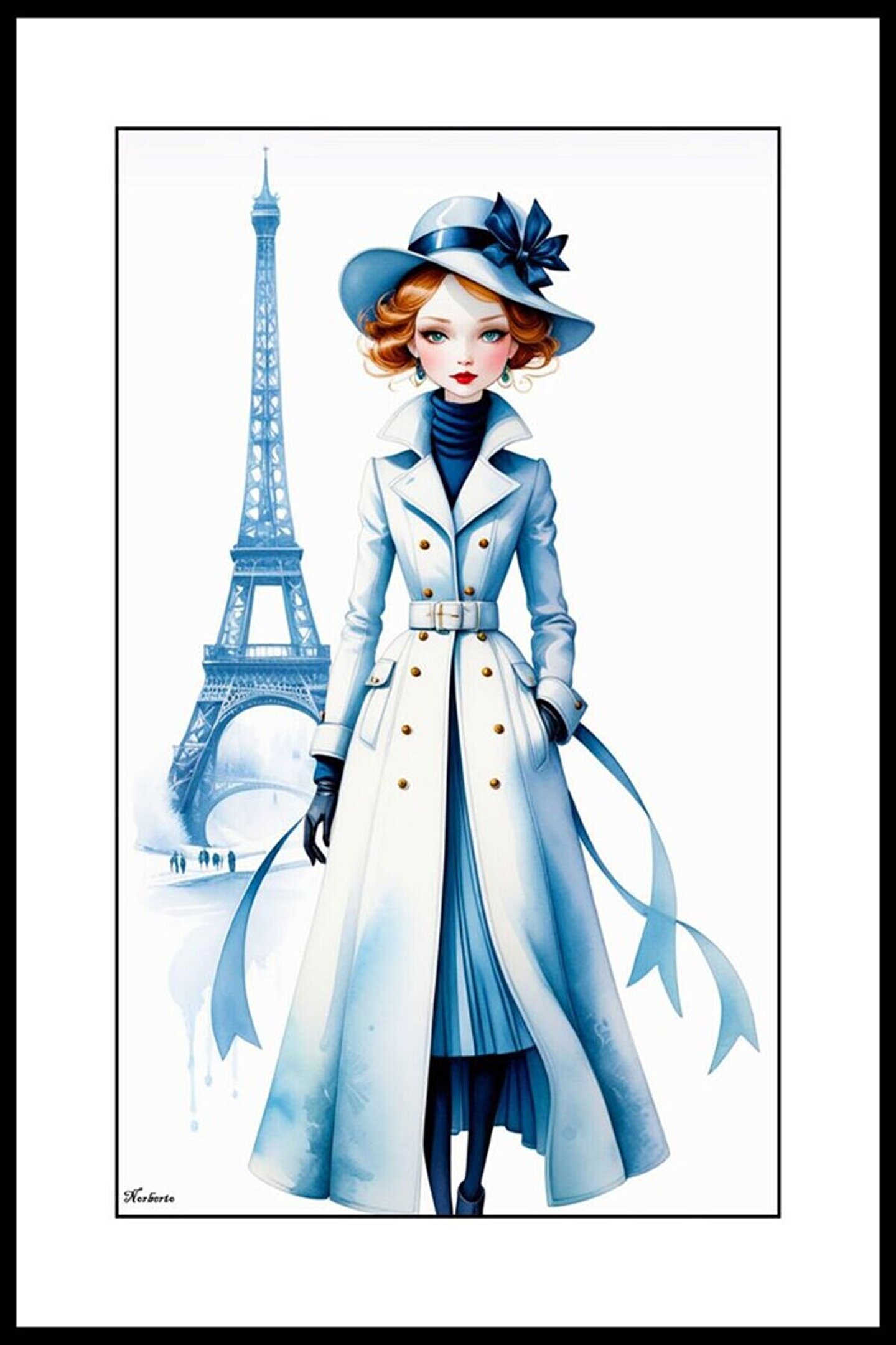 Eyfelde Kadın Digital Art ( ÇERÇEVESİZ - ÇERÇEVE YOKTUR ) ( ULTRA HD ) FOLYO AFİŞ - POSTER