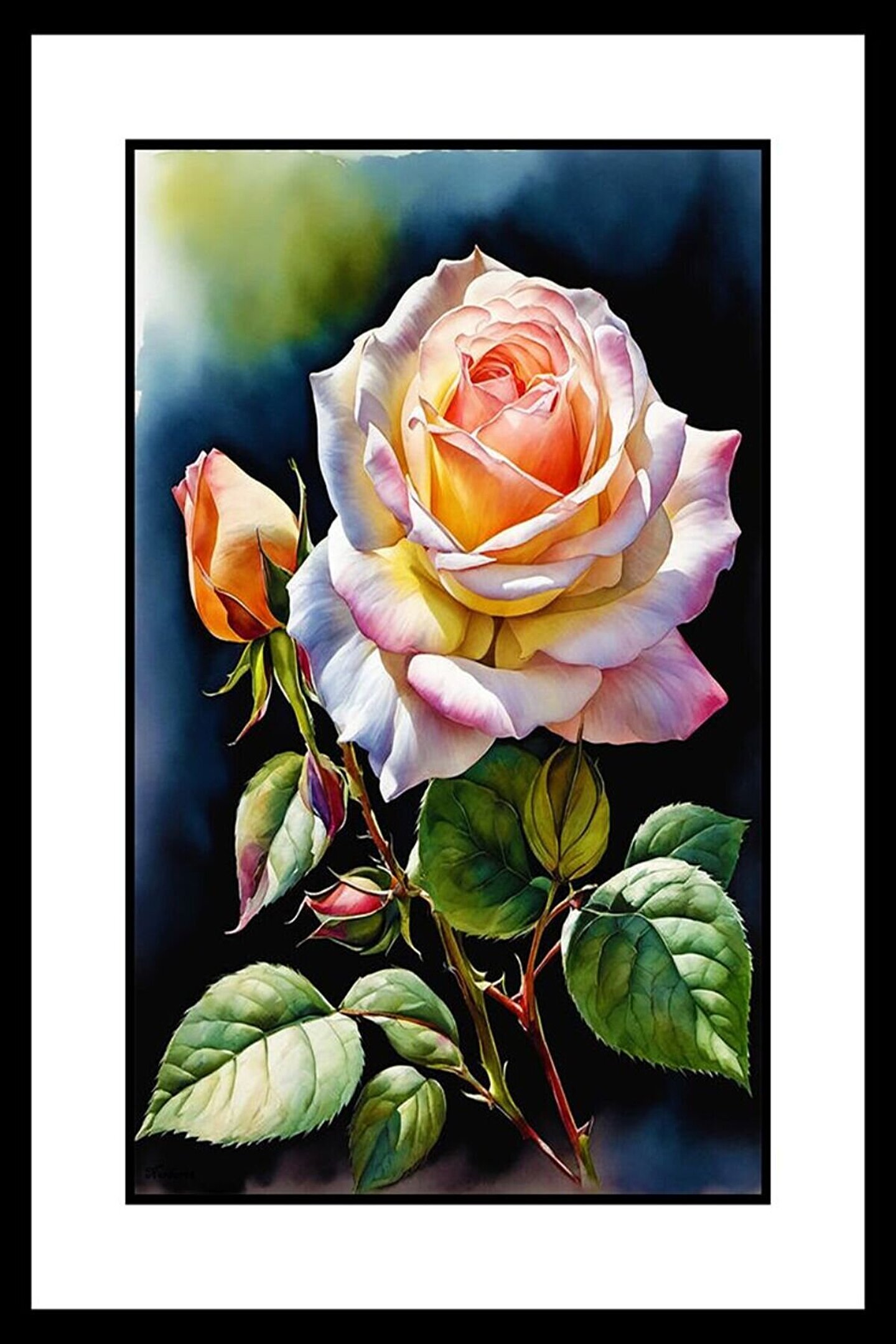 Gül ve Yaprakları Digital Art ( ÇERÇEVESİZ - ÇERÇEVE YOKTUR ) ( ULTRA HD ) FOLYO AFİŞ - POSTER